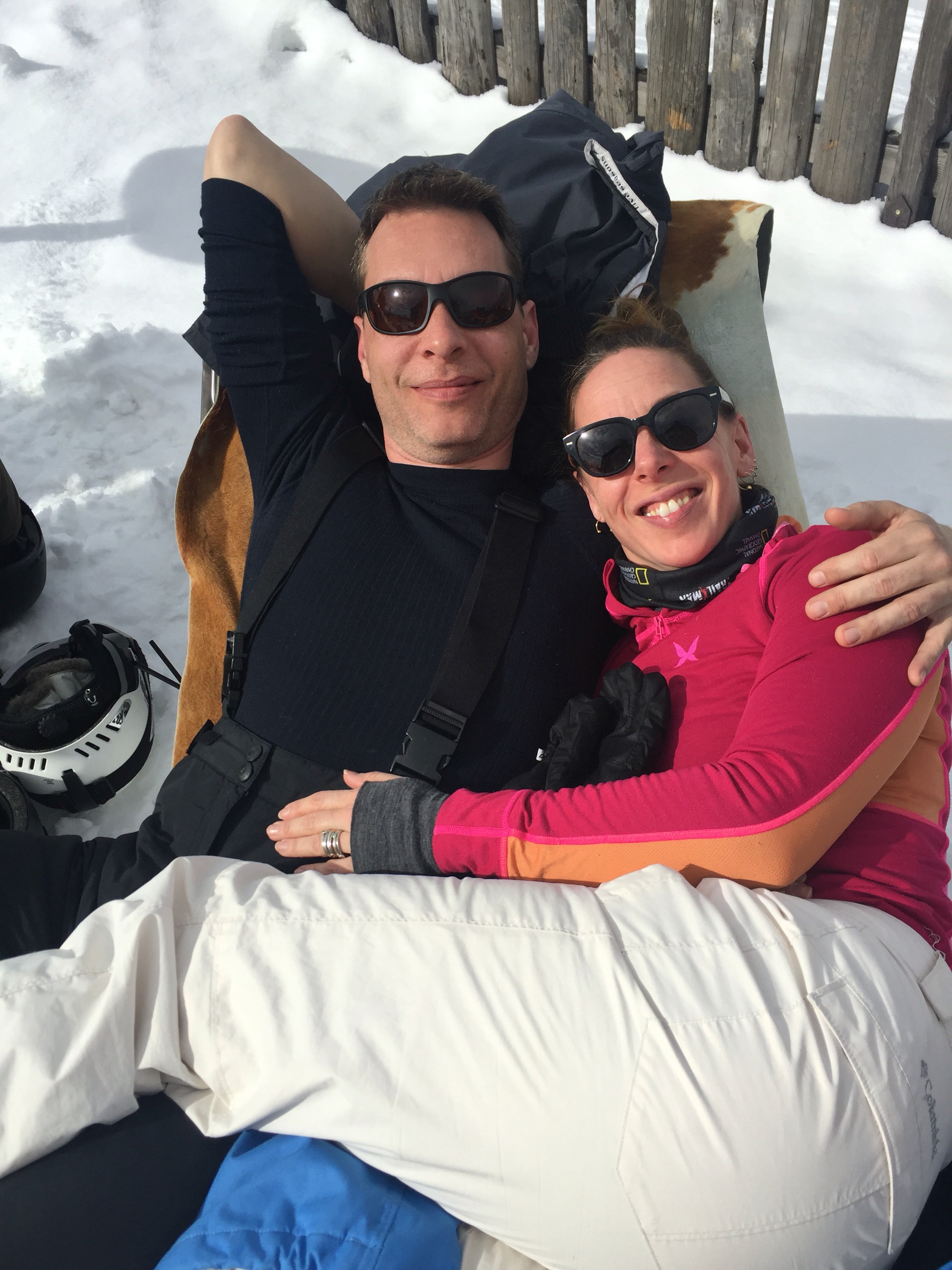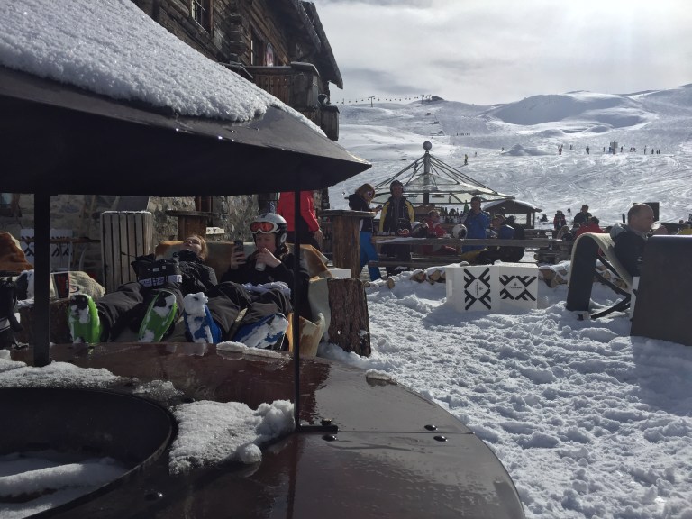Vi måtte have en pause og drak kakao og Bombardino og spiste strudel på dyreskind i solen. Og så var Carla klar igen.