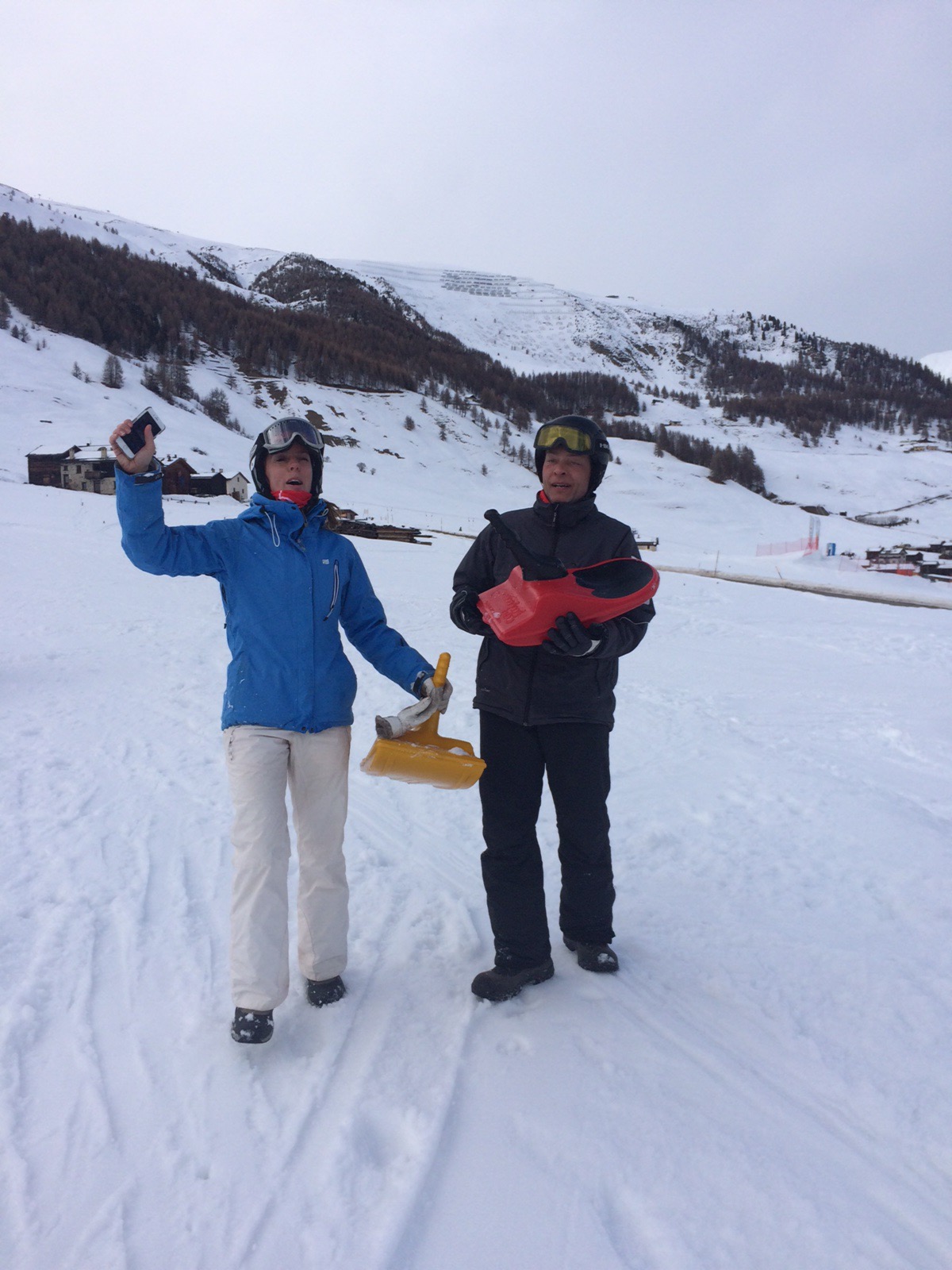Carla tog er ordenlig styrt, og før jeg så mig om, var jeg i løb i skistøvler OP AF SORT for at nå frem til hende. Mark havde dog nået hende før mig. Hun havde fået sin egen ski op på sin kind og var forskrækket😳