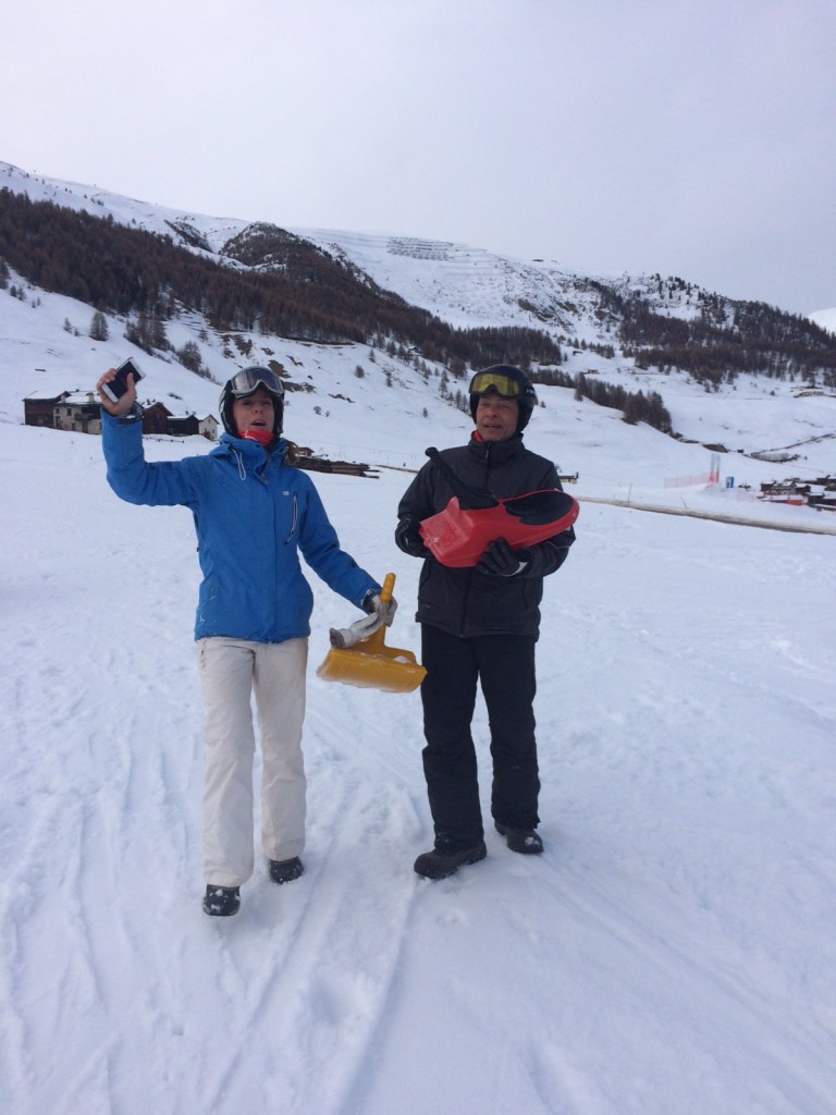Dagen startede tåget og uindbydende og vi trak den lidt med at komme afsted på ski. Men stort set som vi forlod hytten og drog afsted i skibus klarede det op. Det har sneet lidt i dalen i nat men da vi kom op, kunne vi rigtigt se hvor meget ser var faldet – ren pudder lykke på sort piste.