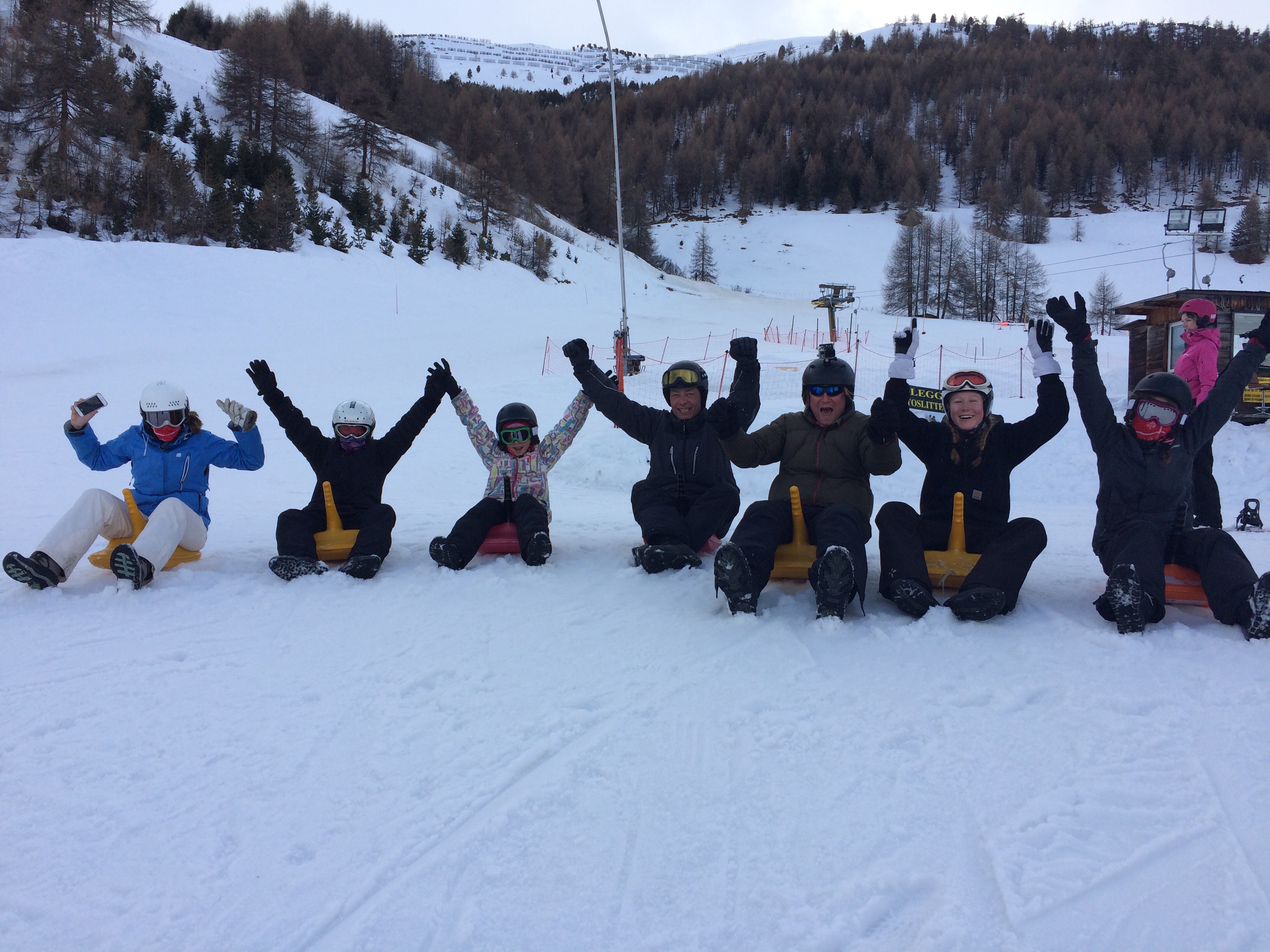 Det er simpelthen hylesjovt med de kælke. Vi var i gang i 5 kvarter op og ned af bakke med flyvehop og fuld skrald.