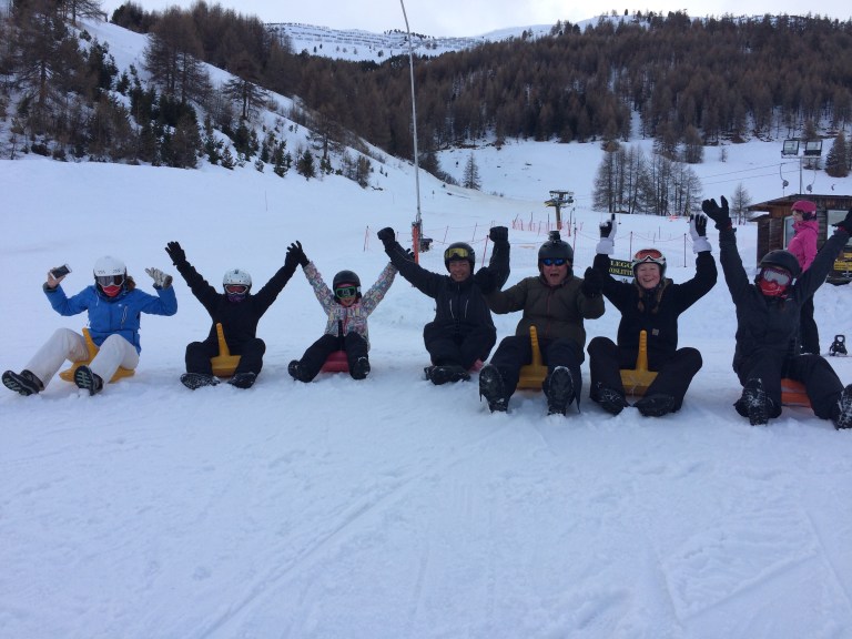 Eftermiddagen stod på kælketur! Mega ræs – med hop og det hele. Jeg nåede max farten på 51,9 km/t og fik et flot styrt ud over kanten på et af hoppene… Men jeg nakkede min mand som det ses!