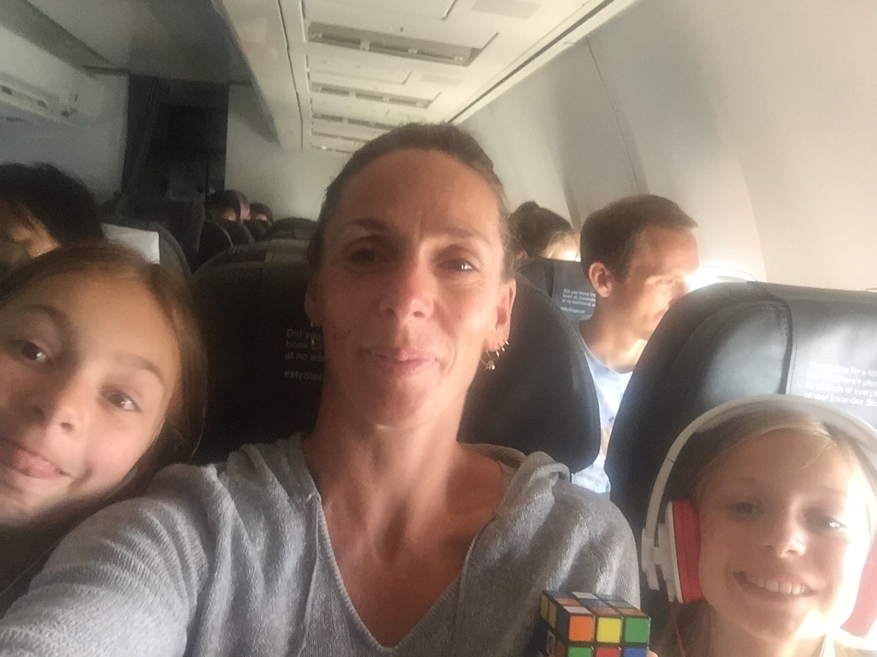 Begge pigernes filmstationer virkede ikke så vi flyttede lidt rundt. Carla faldt hurtigt i søvn og jeg knoklede lidt rundt i sædet men alt i alt en hæderligt tur.