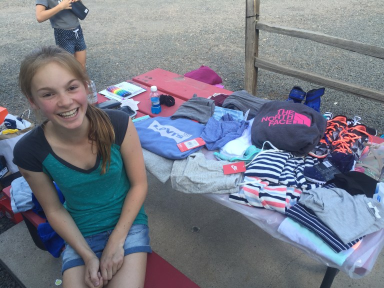Pigerne besluttede at gå lidt på opdagelse i prospect park som vores ellers ret intetsigende RV park ligger ved. Der var virkelig en fornøjelse! Masser af legepladser, en basketkurv, et par foboldmål, en række grillpladser, ænder og hundeluftere alt sammen langs med clear water Creek, selv samme flod som vi skal rafte på i morgen.