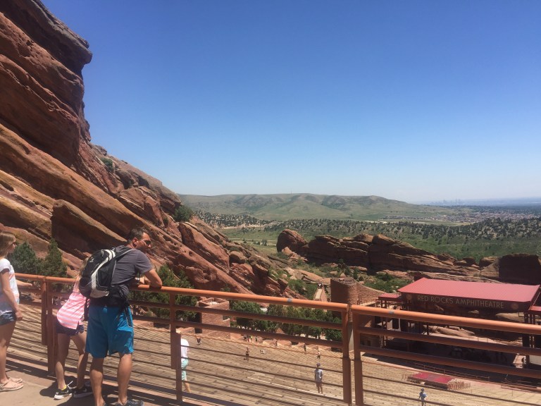 Vi fik en anbefaling om at smutte forbi Red Rocks Amphi Theater som ligger lige ved Morrison. En stor scene placeret i over 2000 m mellem to 3o mio år gamle klipper med udsigt over Denvers ørken og skiline.