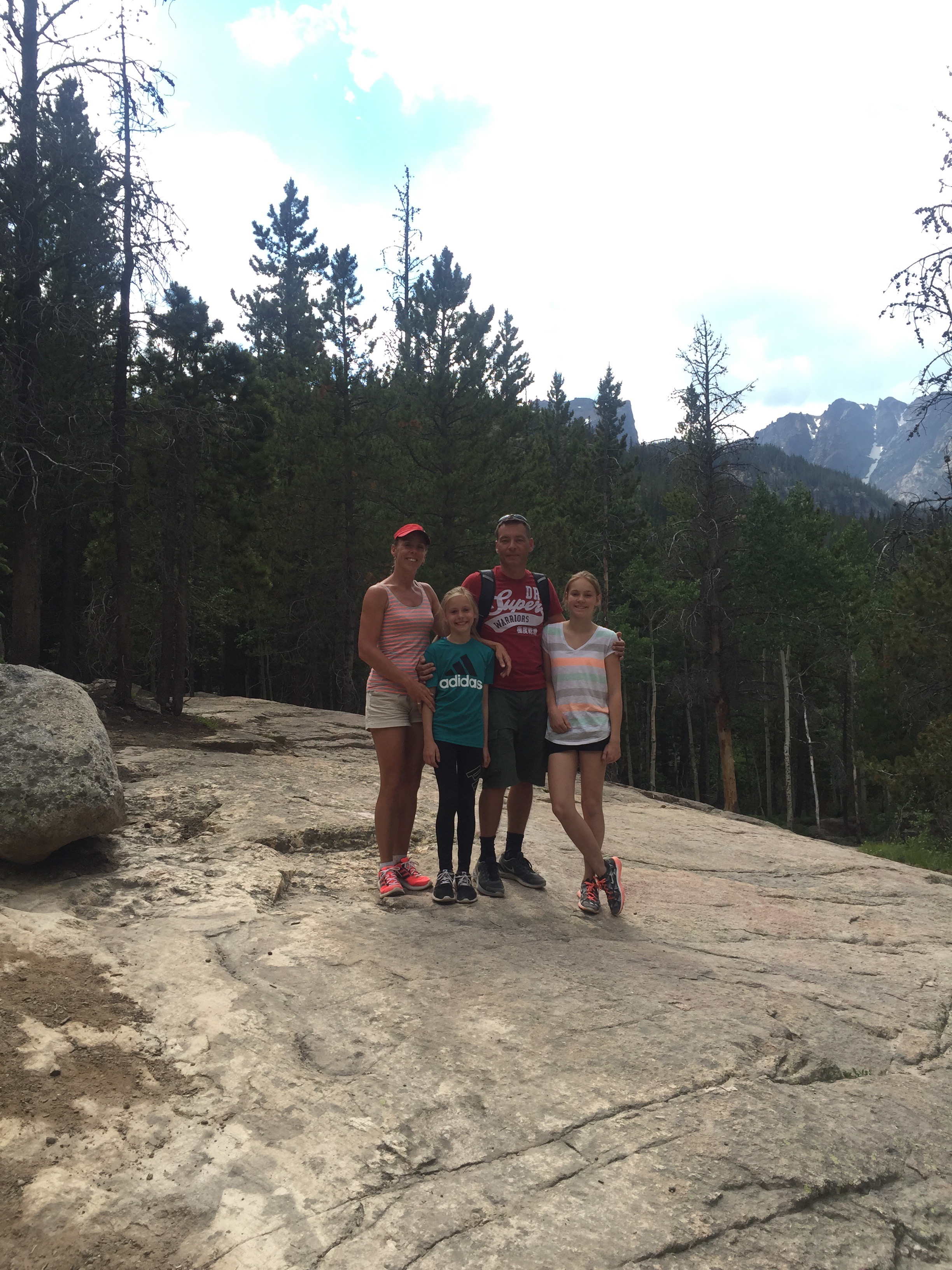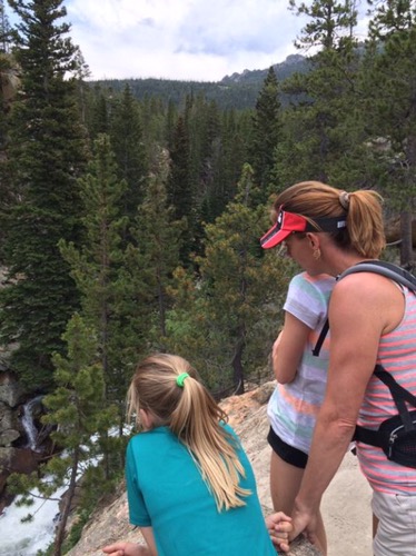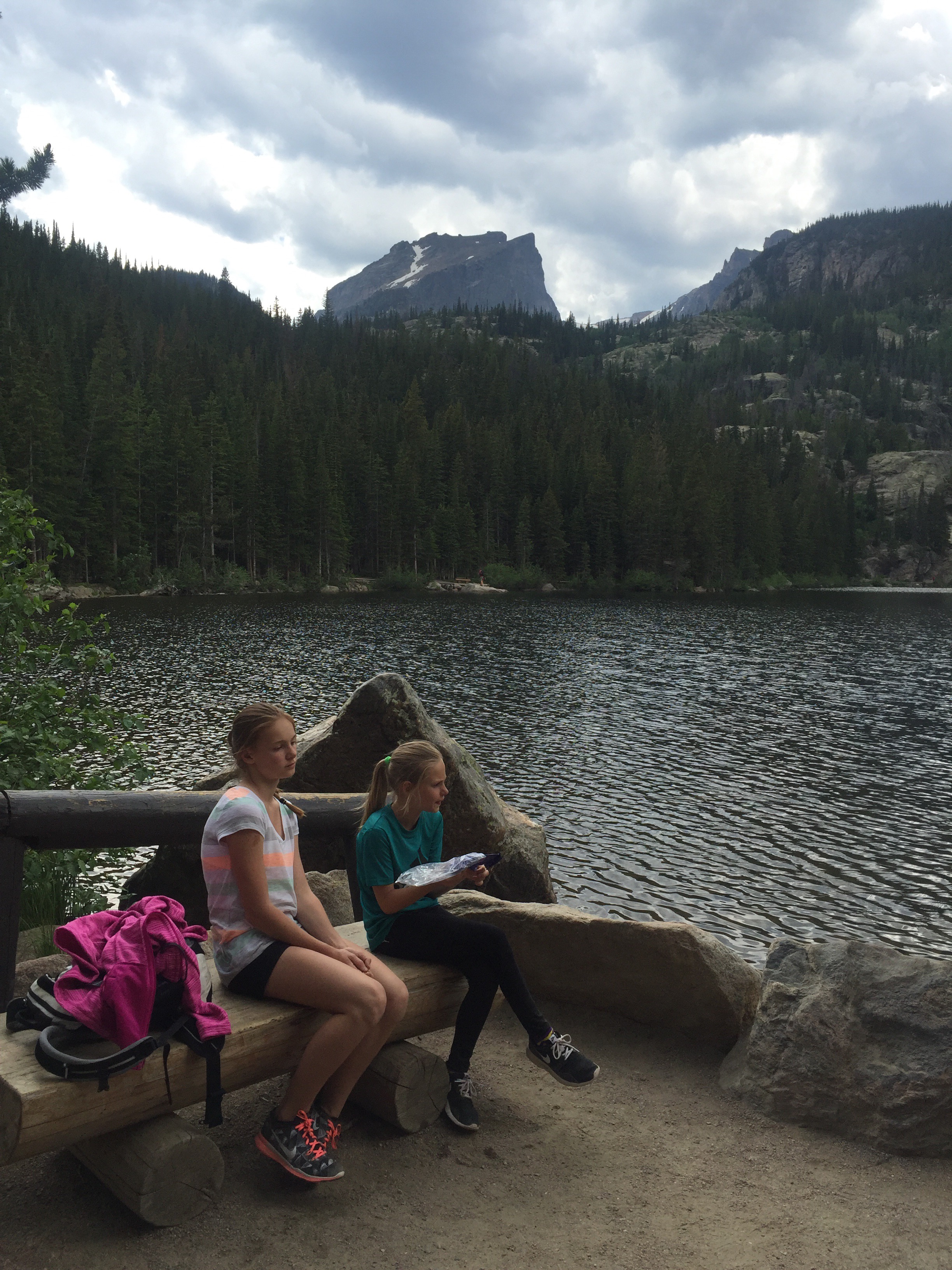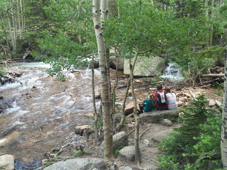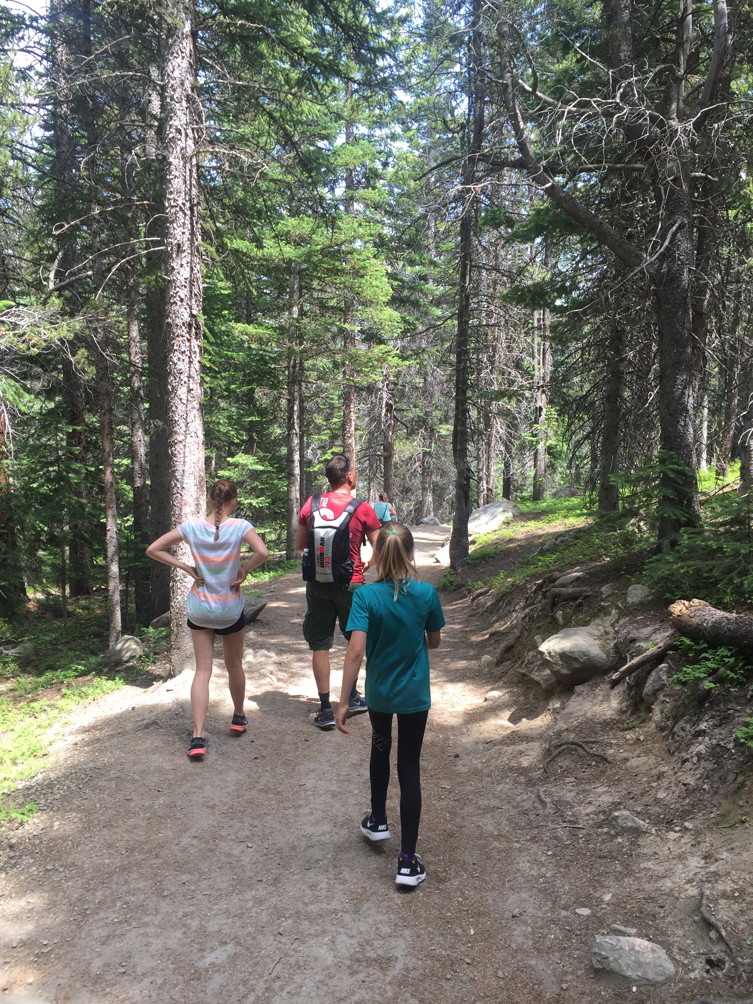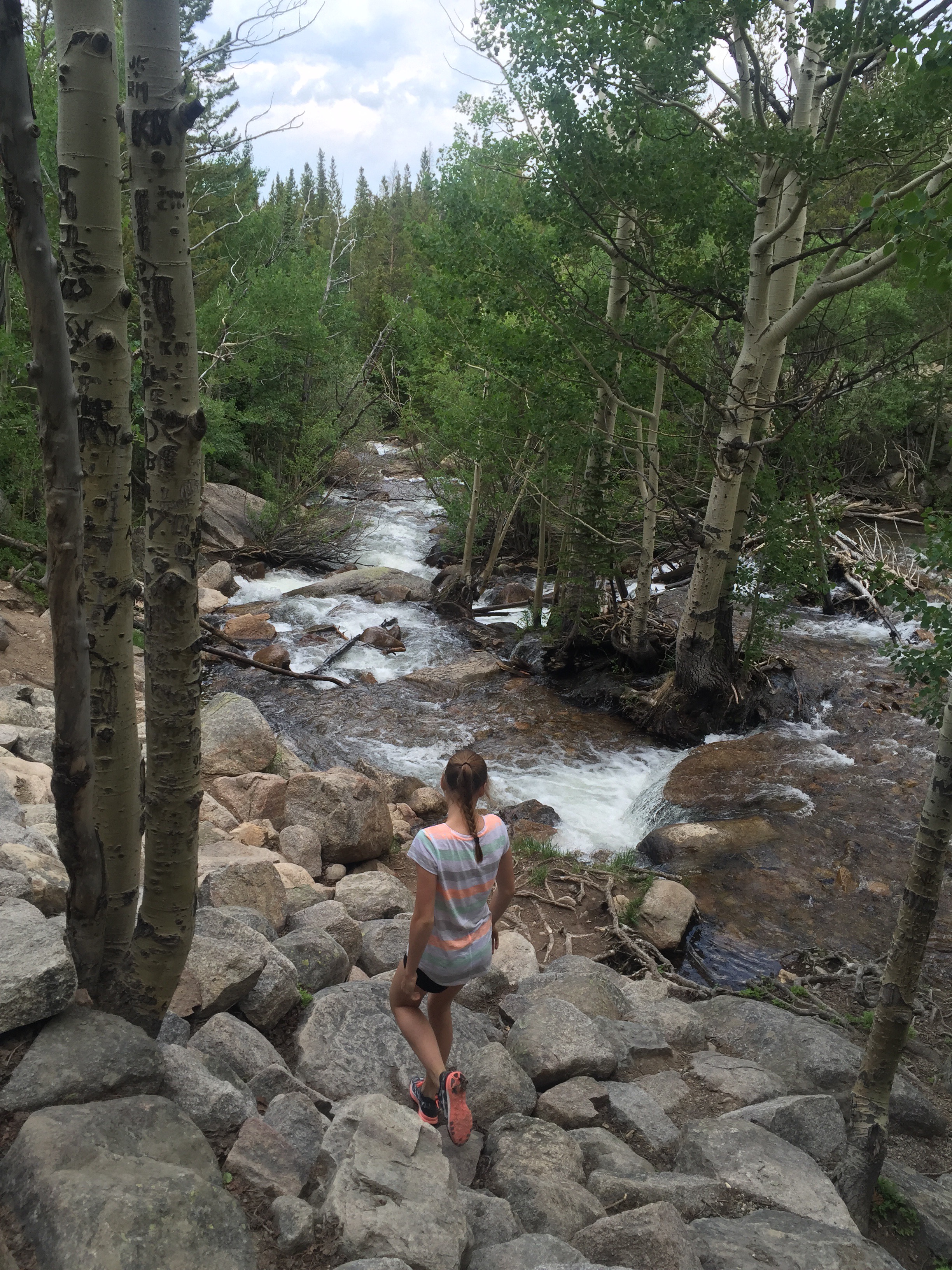 Vi gik mod Alberta Falls og derefter videre mod Loch Vale. Men da vi hørte torden og havde fået instrukser om i så fald at vende om, nåede vi ikke helt derop. Liva havde en del mavesmerter, så der var flere indikatorer på at vende om. Det blev til ca 7 km hike:-)