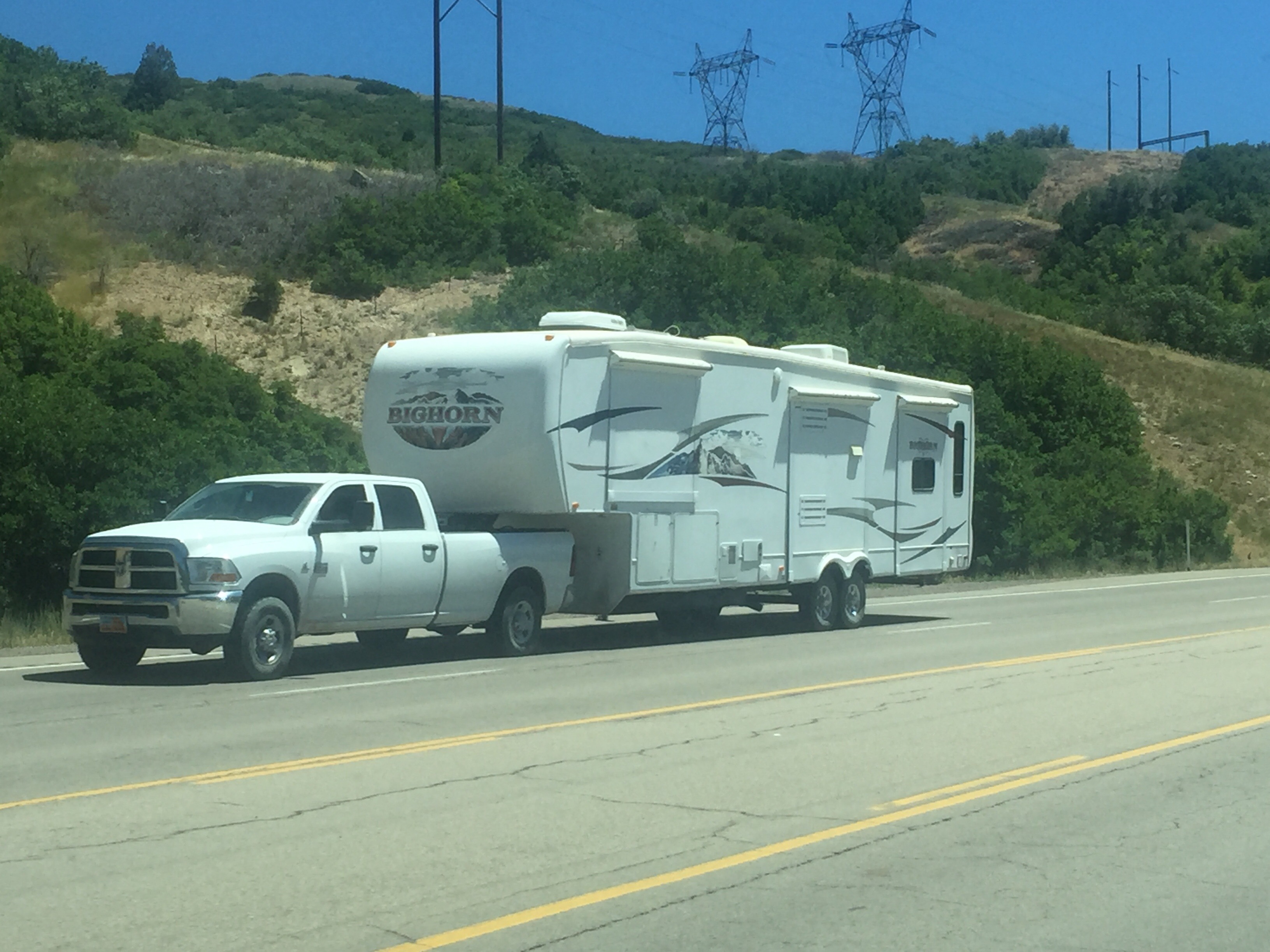 Hvis vi synes at vi kører i en stor bil (30 feet/9.1m) så er det det rene barnemad sammenlignet med hvad amerikanerne kører i af trucks og RV!