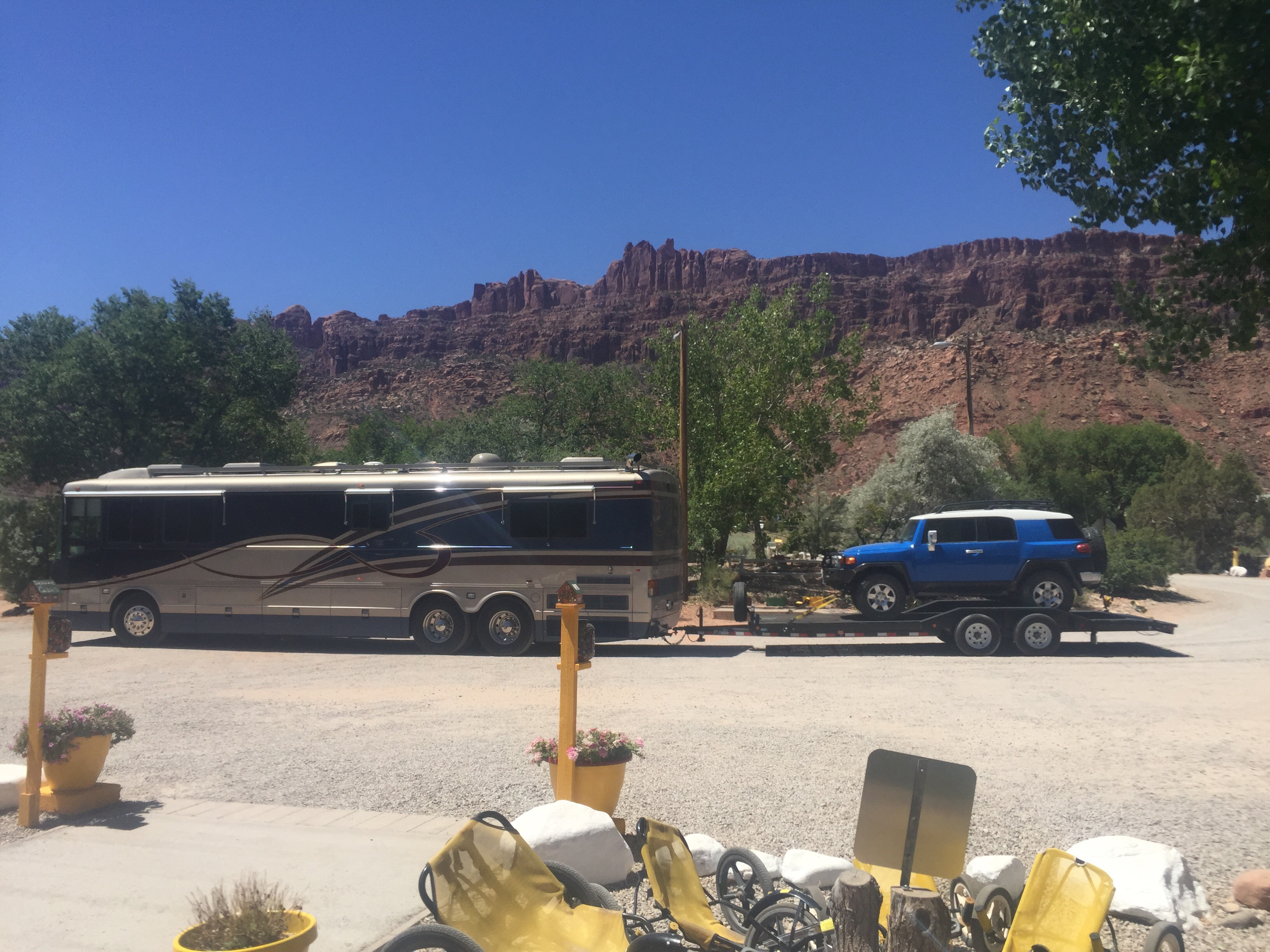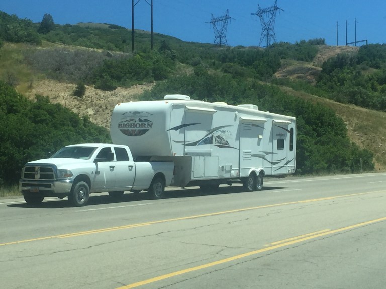 Stort er ikke stort nok! Bigger is better… Vi passerer rigtig mange huse, hvor der også står en kæmpe campingvogn eller RV . Så ikke overraskende tager man også selv på camping – hvis man kan kalde det det. Det er jo nærmere et sommerhus på hjul – helt op til 80 feet/26 m!!!