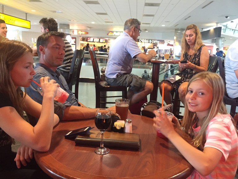 Vi er boardet og klar til hjemflyvning: 7 timer til Island, 1 god time der og yderligere 3 timer hjem derfra. Ankomst kl 12.45 i dk – i vores tid er den 02.45…