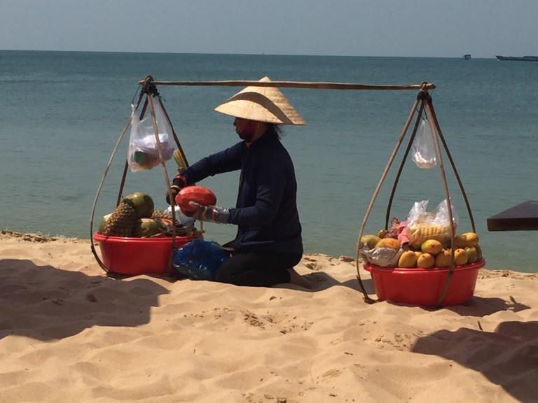 Jeg løb ned til enden af stranden ved nogle klipper og konstaterede, at man kan gå hele vejen til byen.