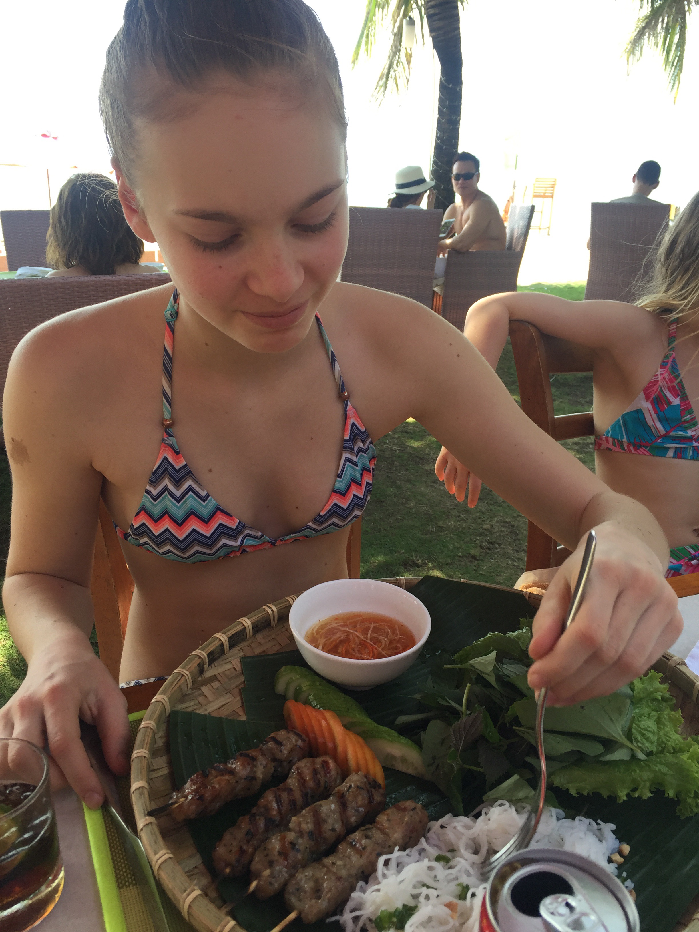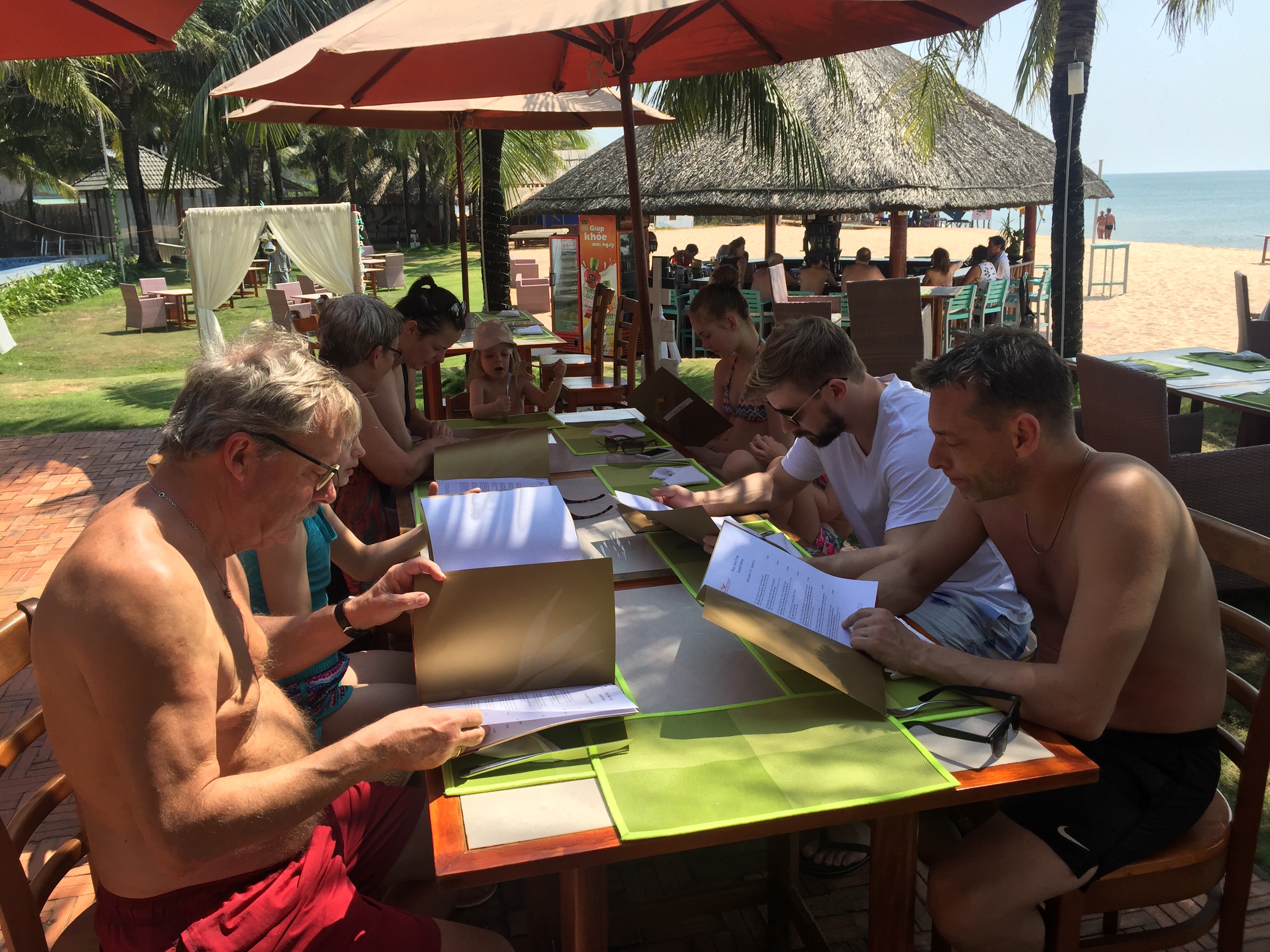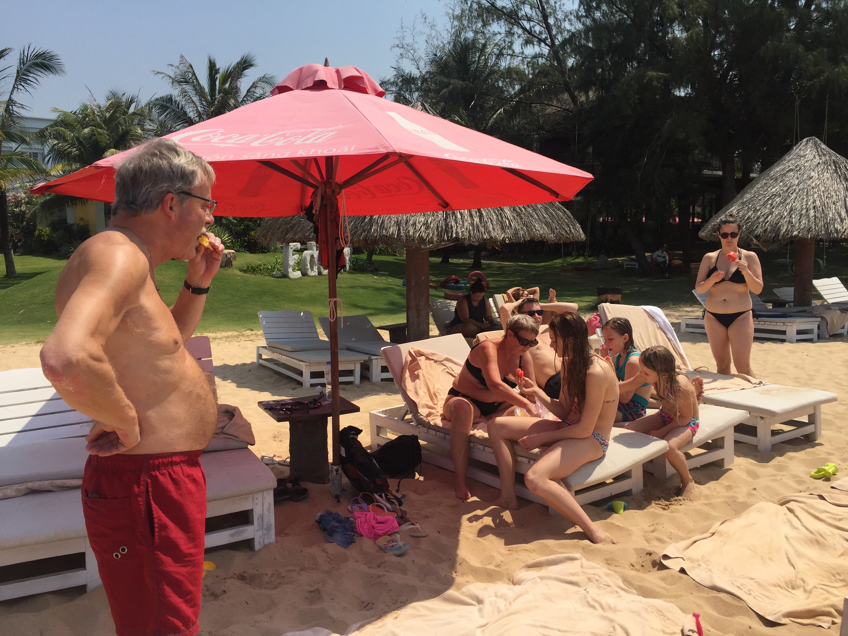 En kæmpe morgen buffet senere fik vi alle installeret os lidt af gangen ved havet, som er lækkert og varmt. Vi er alle enige om at klimaet er perfekt for alle 10. Ingen sveder – eller fryser og stedet her marcher perfekt 3 generationers behov.