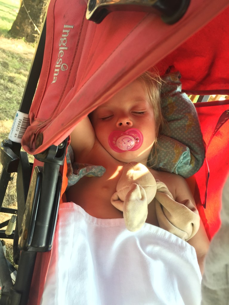 Vi fik en dejlig frokost og Elise snuppede en lur i skyggen.