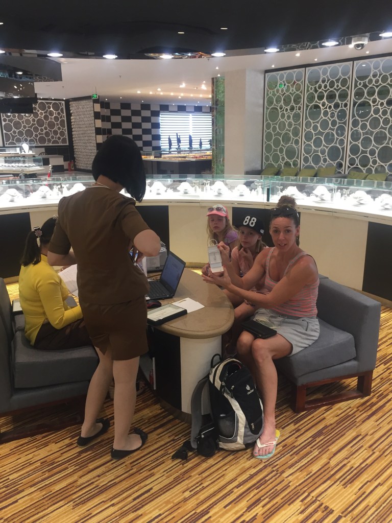 Første stop var Long Beach Center – et sandt perle mekka, hvor vi først blev hejlet igennem 5 min video om perleproduktion i Vietnam. Dernæst showroom og ja jeg kom til at bruge 100 dollar på en fint vedhæng:-) Elsker smykker fra ferier!