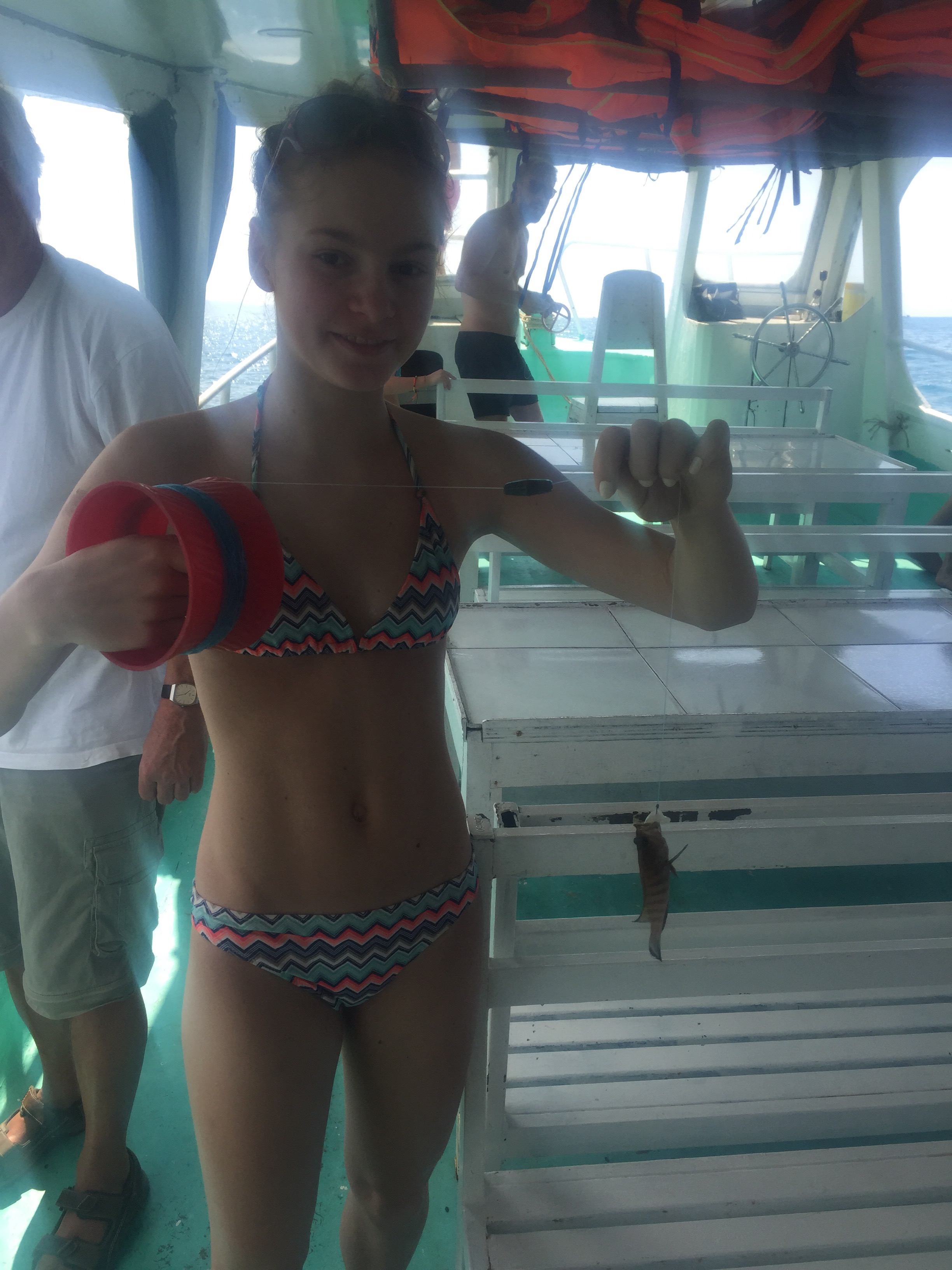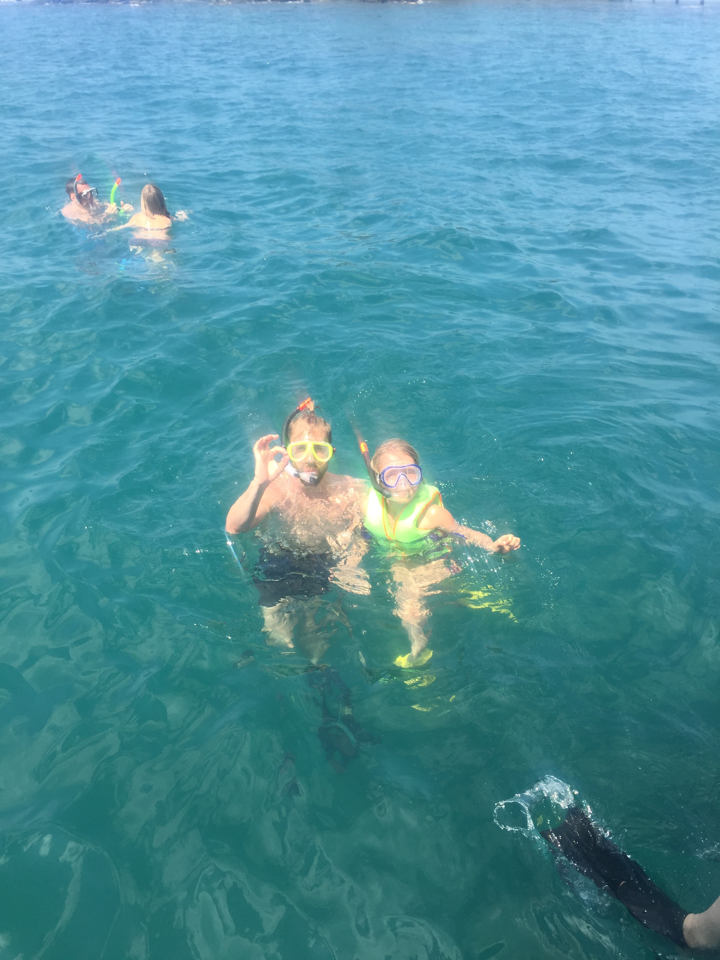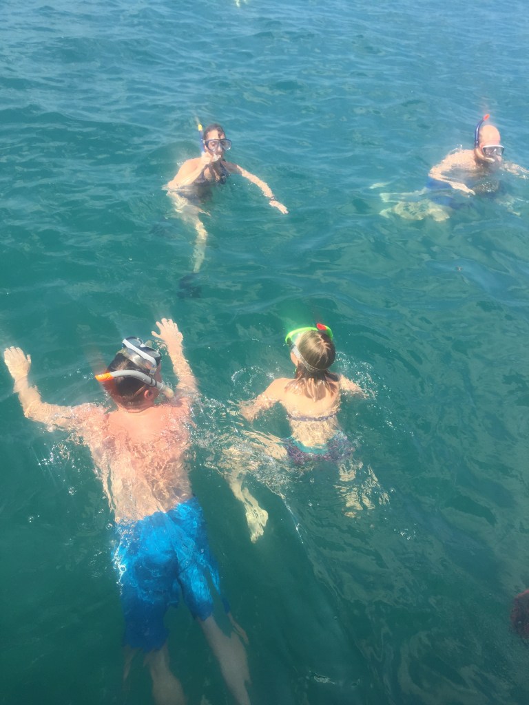 Lige før frokost snorklede vi og Ebba var mega sej! Carla havde lidt nedsmeltning over det – hun syntes hun kom for tæt på korallerne og jeg havde en maske, der drillede. Far blev tilbage om bord.