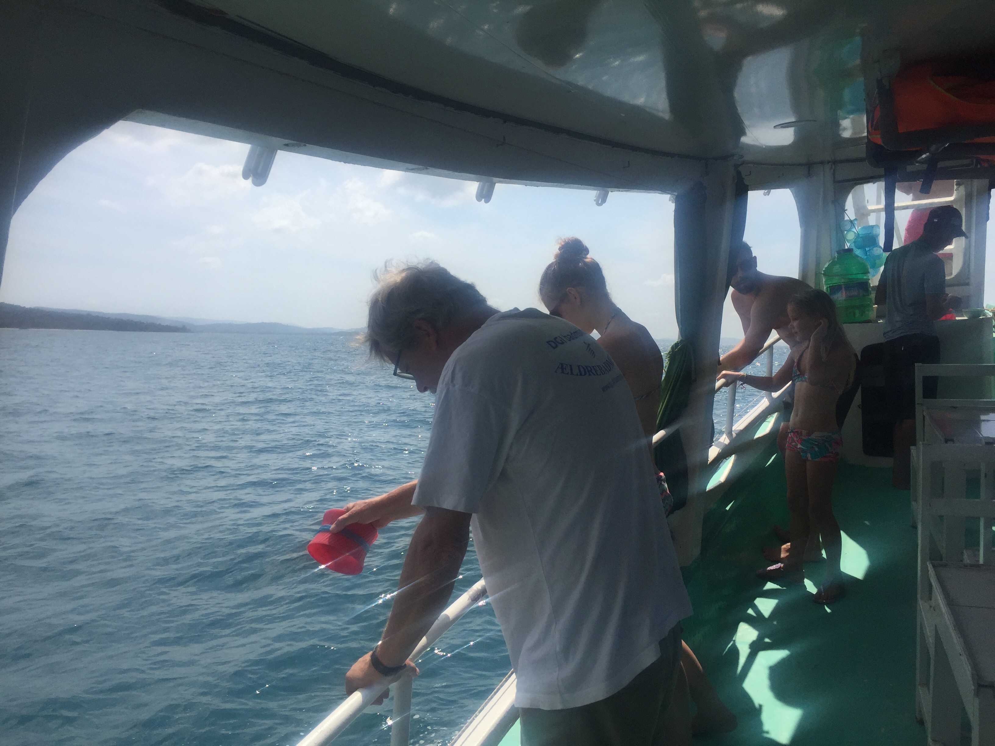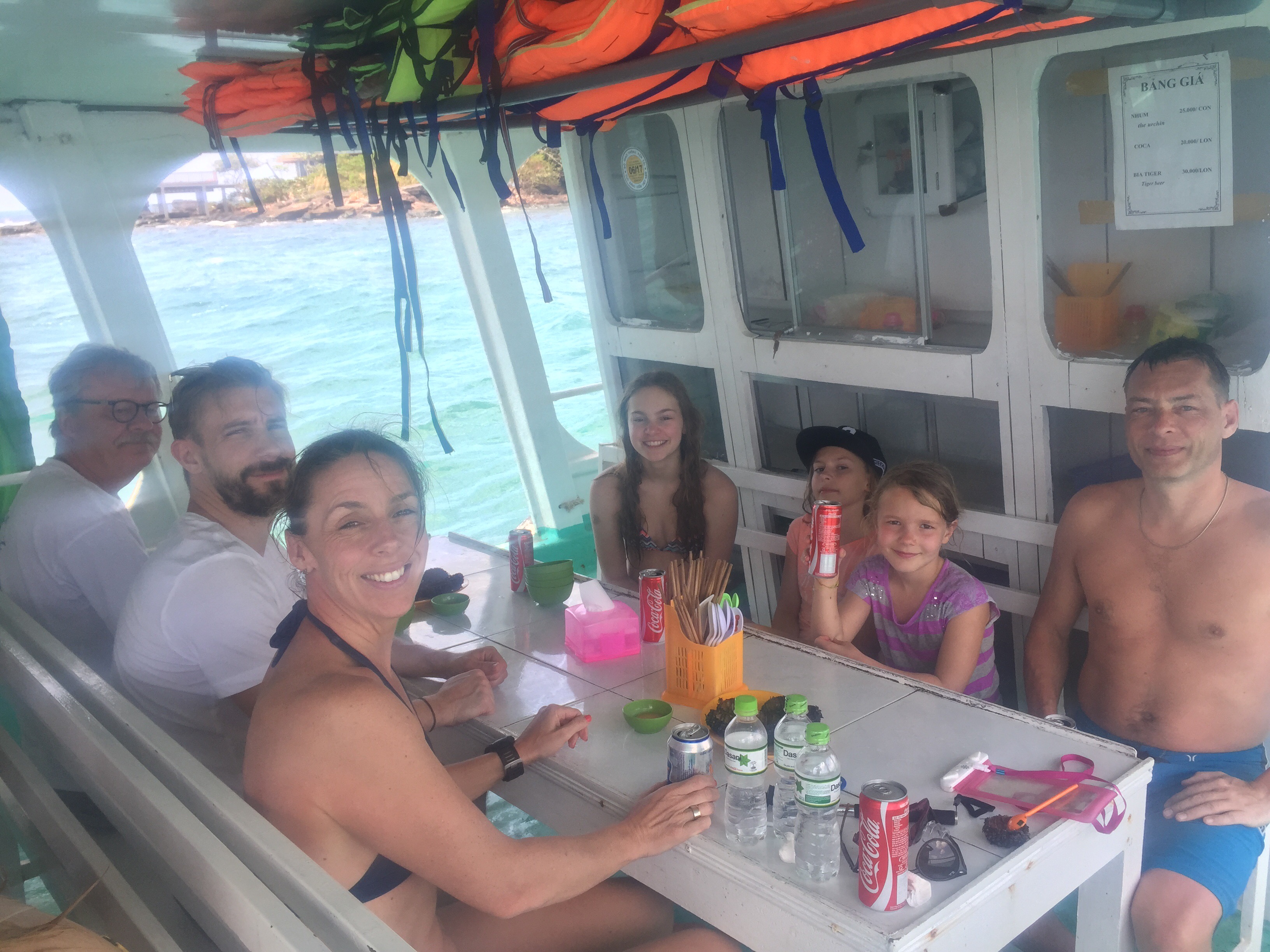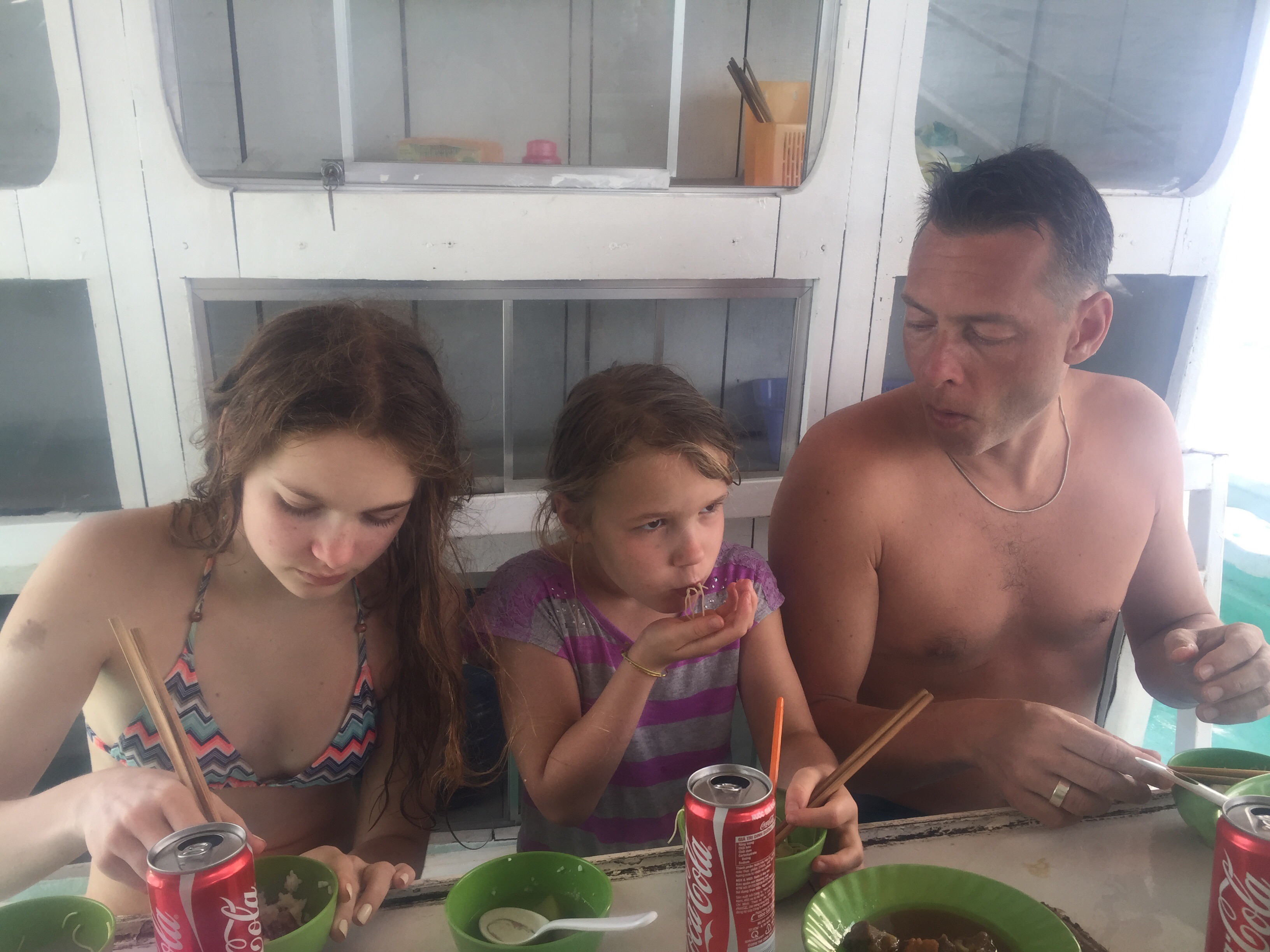 Lige før frokost snorklede vi og Ebba var mega sej! Carla havde lidt nedsmeltning over det – hun syntes hun kom for tæt på korallerne og jeg havde en maske, der drillede. Far blev tilbage om bord.