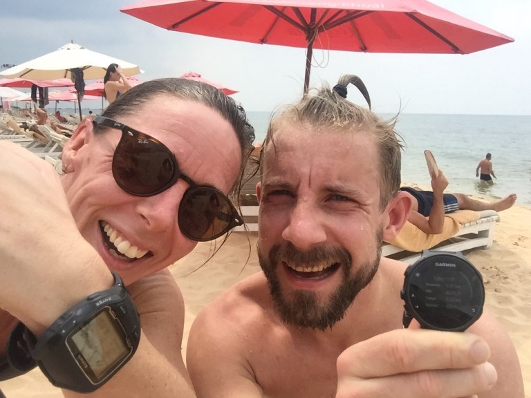 Anders og jeg løb en asfalt tur på 8 km – den var varm nok, selvom det var overskyet!