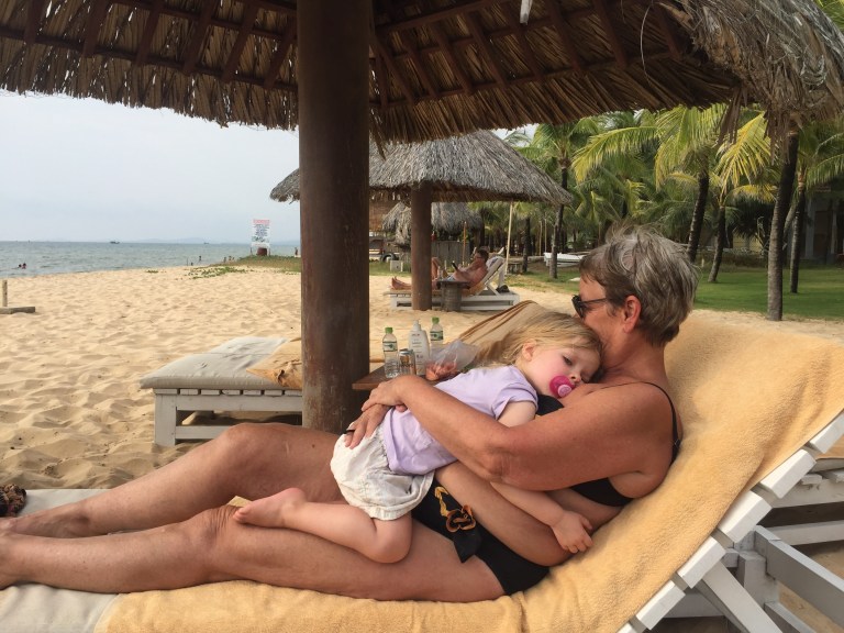 Efter en lur er det altid rart at putte lidt hos mormor.