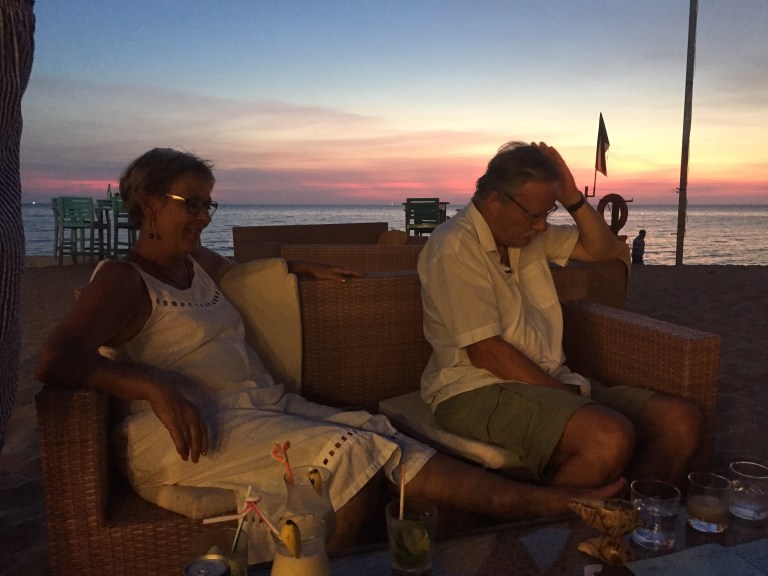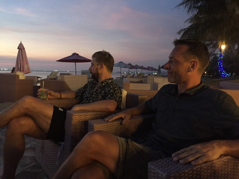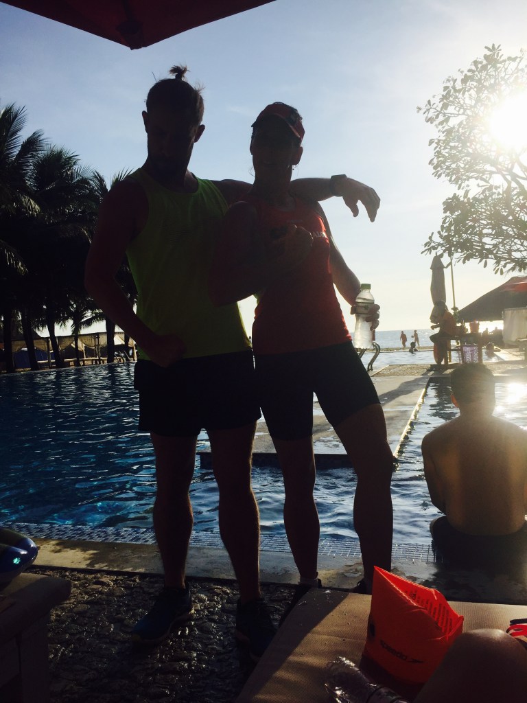 Efter en varm løbetur nåede vi hjem til solnedgang og en drink på stranden.