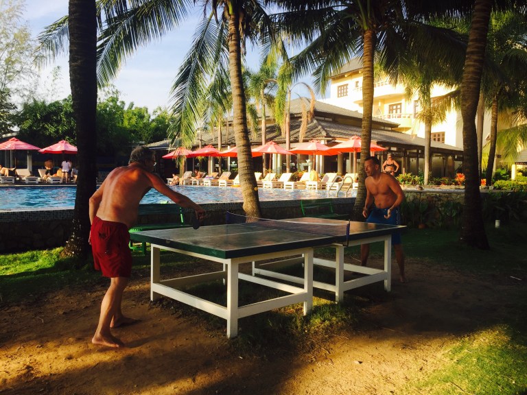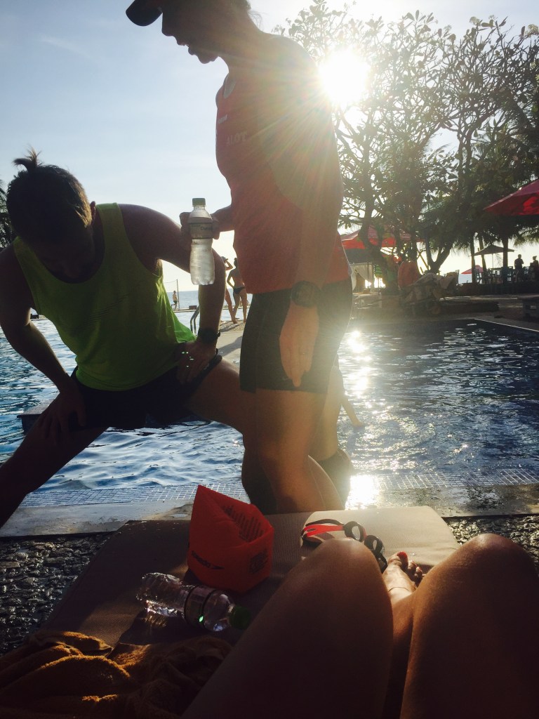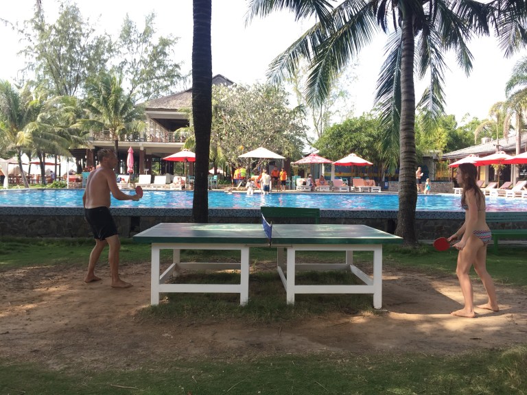 Og vi legede længe i poolen og talte med et nyt sæt danskere, der er ankommet – ovenikøbet en familie som Line og Anders har mødet til Andreas og Sidses bryllup…