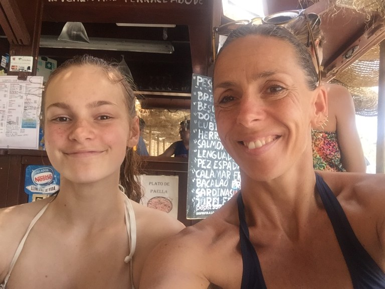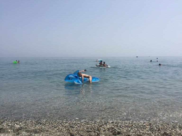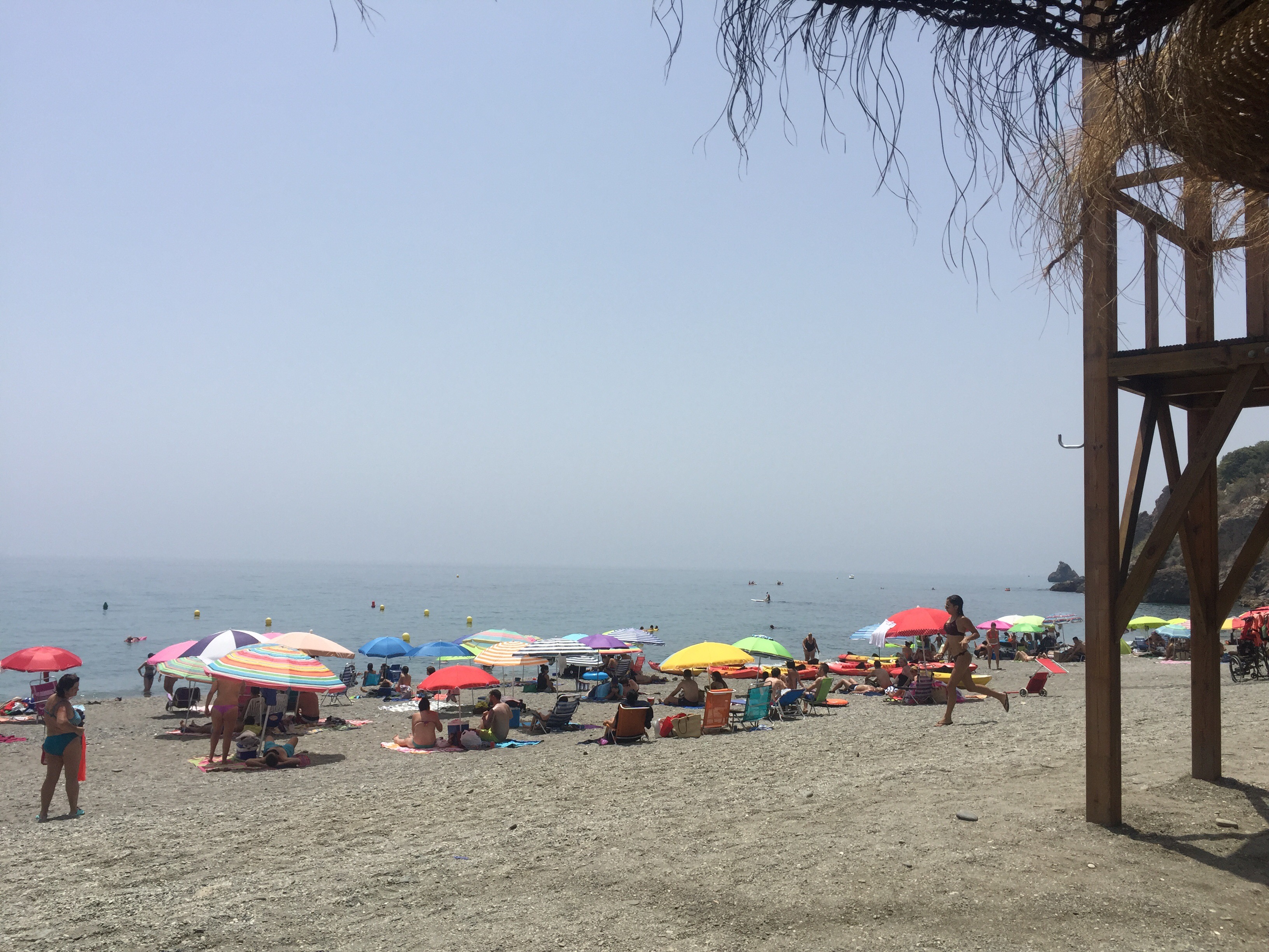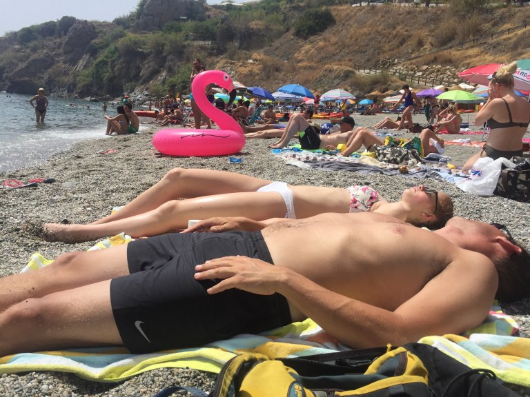 Så vi brød op ca kl 14 og kørte tilbage mod Nerja og fandt Mora. Lille bitte og ret fyldt strand men med plads til os lige i vandkanten.