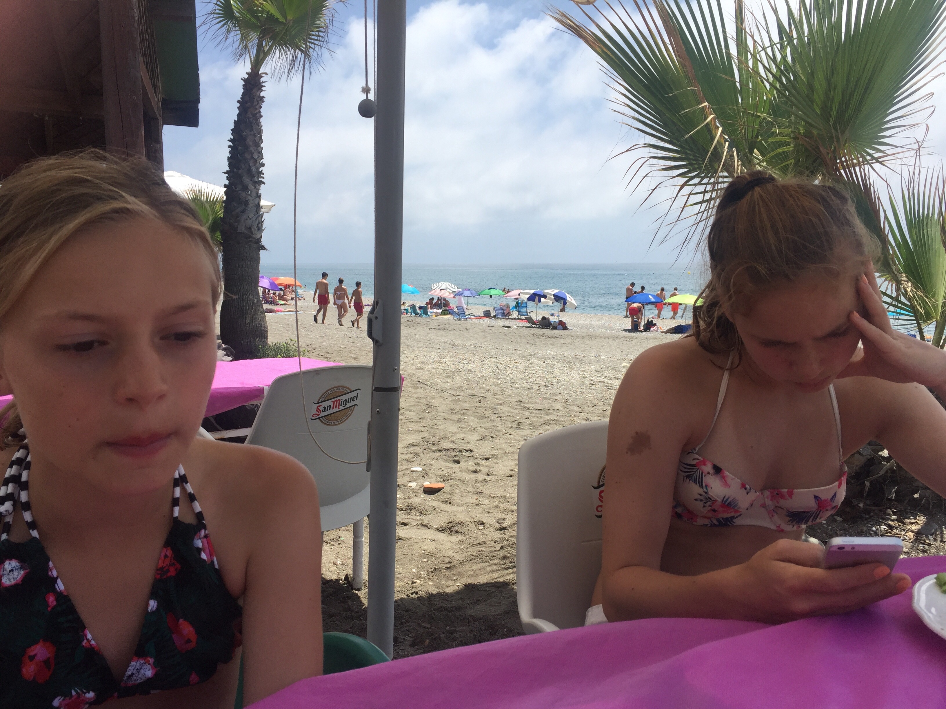 Et par lokale hjalp til med isterninger og ret hurtigt fortog det sig. Mindre end en halv time senere var hun ok og så havde vores svenske strand-naboer en lignende oplevelse med deres datter, der var lidt yngre end Carla.