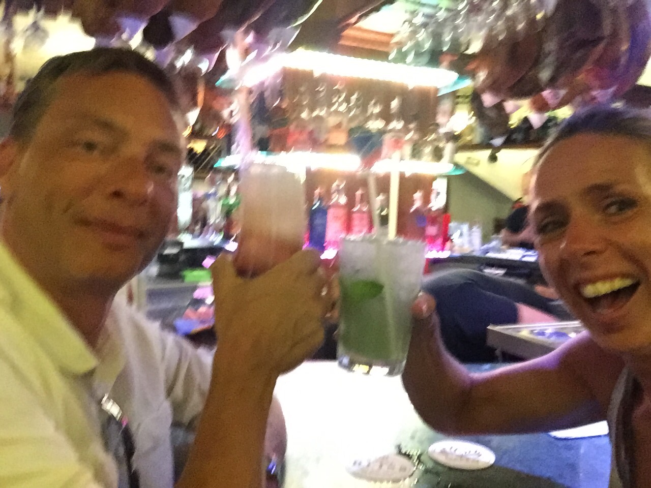 Pludselig havde Mark og jeg derfor natten for os selv og snuppede lige en godnat drink.