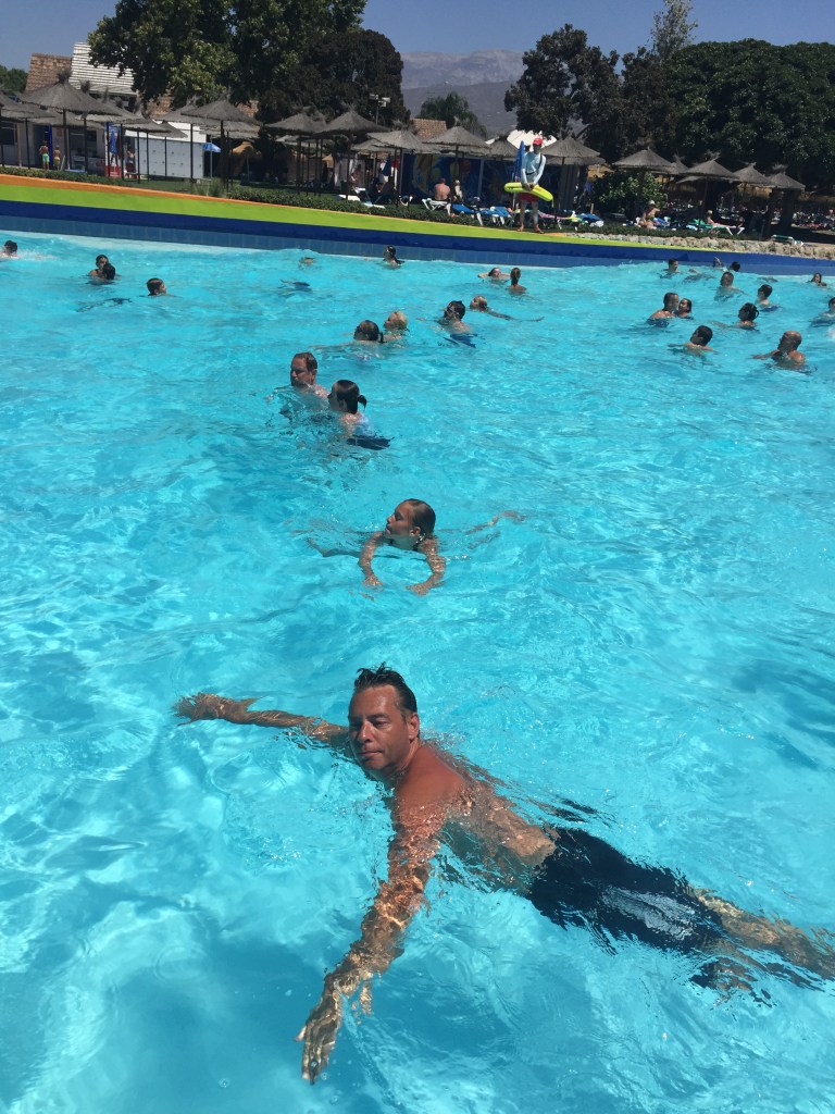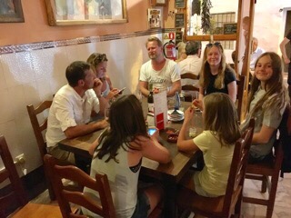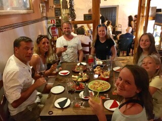 Vi tog lige hjem forbi og fik et bad og mødtes (efter lidt sko-shopping!) med nr 5 midt i Nerja hvor vi fandt er meget “autentisk” tapas sted og spiste mængder SF pølser, skinke, ost, tomater med god rødvin til:-)