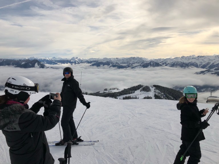 Vi ankom i zell am see kl 7.30 men havde holdt er pitstop hvor Esben blundede ved 3-4 tiden. Mark har slet ikke sovet i nat. Vi fandt en cafe og spiste morgenmad og derefter fik vi købt liftkort og lejet ski. Vi skiftede tøj i bilerne og var klar ca kl 10.