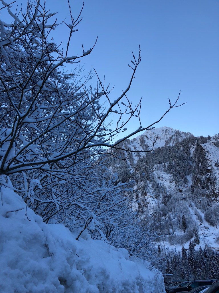 Vi kørte nedad kl ca 15. Handlede på vejen hjem. Mark satte mig og Carla af ved skiudlejningen og Carla byttede tilbage til ski til i morgen. Vi kørte hjem af skovløjpe til døren og spillede et slag Hint. Carla og mor mod Esben og far.
