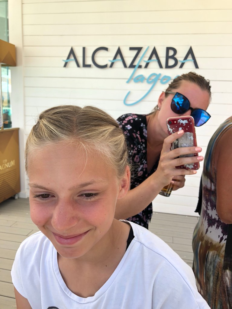 Vi brugte dagen der og jeg fik svømmet sølle 600 m, før jeg blev stoppet af en bademester, som sagde jeg ikke måtte gå så dybt ud… (og det siger man til mig?)