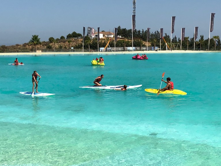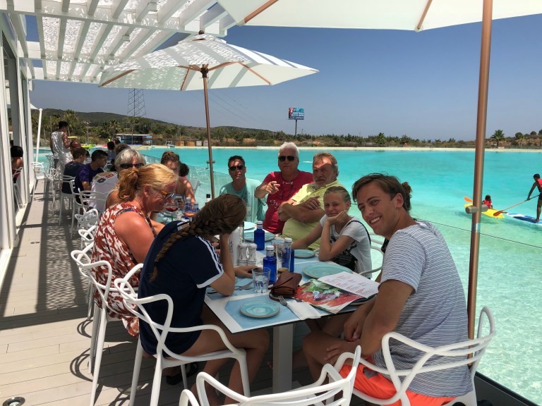 Det var et fint sted – nærmest en kæmpe pool hvor man også samtidig ku bruge padder boards, vandcykler osv med en restaurant lige ved vandkanten.