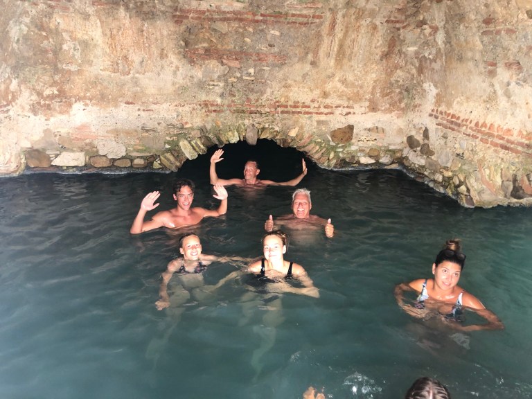 Så fik turen op til bjergene til nogle termiske svovlkilder hvor man kan smøre sig i naturligt mudder og skylde sig svovlholdigt kildevand og bade i en grotte.
