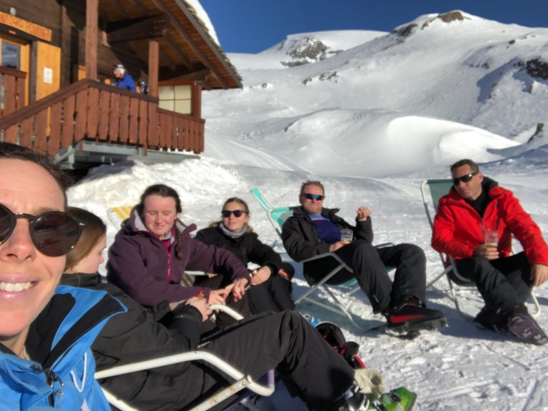 Vi kørte mod Salette og Valtournenche på Italien-siden og efter frokost blev Liva, Mark og Stine hængende i en liggestol mens de øvrige kørte lidt op og ned af de røde i det område.