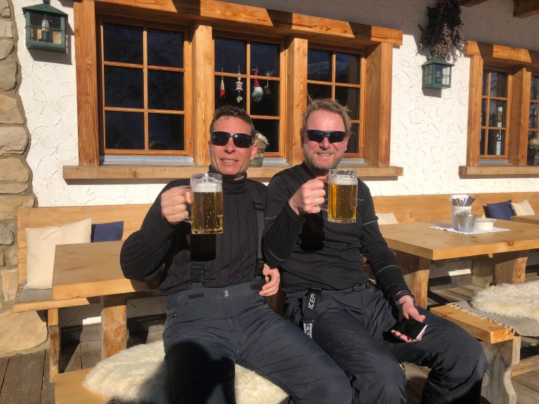 Ny rekord for nedpakning af lejlighed, morgenmadspisning og klargøring til skidag. Vi var klar ved liften før de åbnede flere gange på vej op af bjerget.