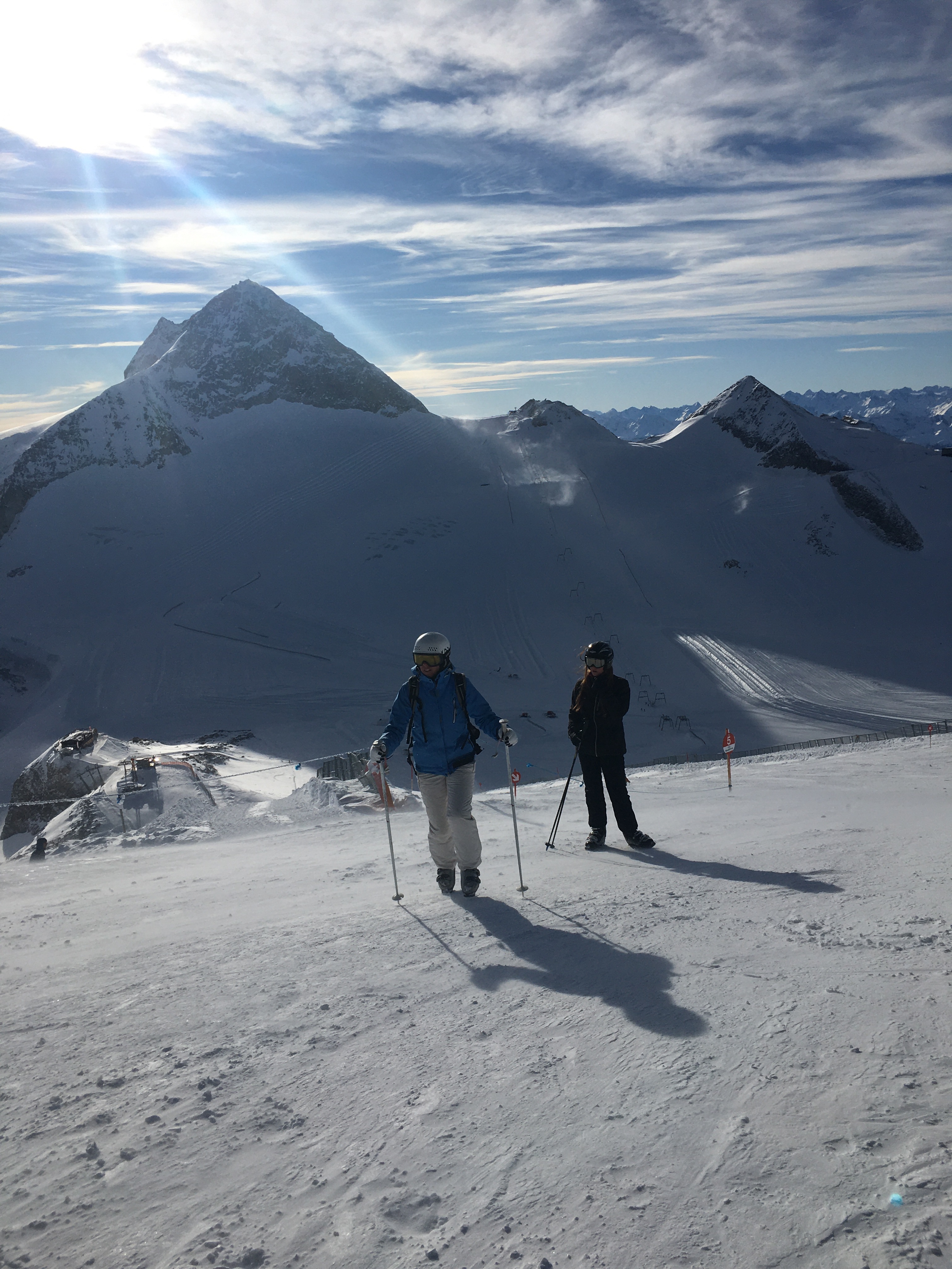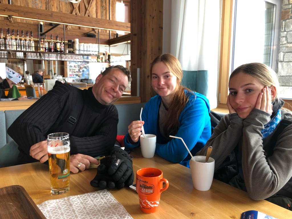 Dejlig dag men også udmattende! Vi var ude af døren 8.15 og først retur 17.30 efter en meget fin tur til Hintertux: først 6 minutter med toget og så 1/2 time i bus (fin udsigt) og så 3 store gondoler op på gletcheren og dermed først ski på og sne under fødderne kl ca 10.
