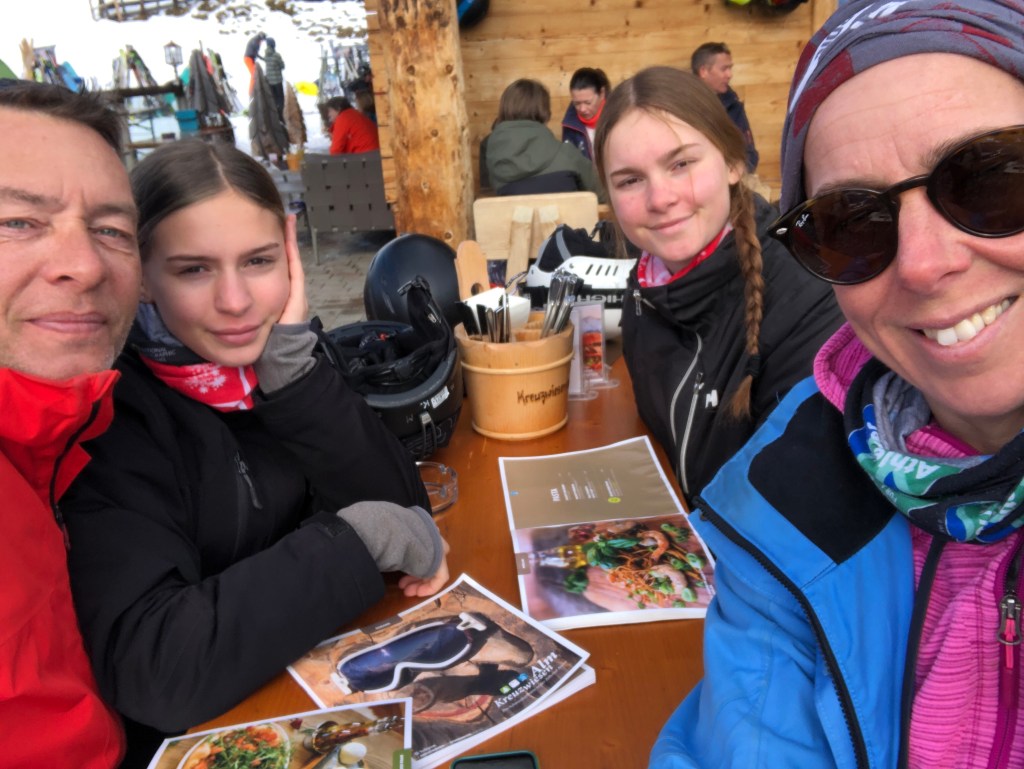 Vi har fået røde næser af solen og selvom vi skal hjem i morgen, så har vi fået lov til at være på værelserne helt til vi skal afsted kl 22, så vi pakker ikke før vi kommer hjem fra ski og løb. Genialt koncept.