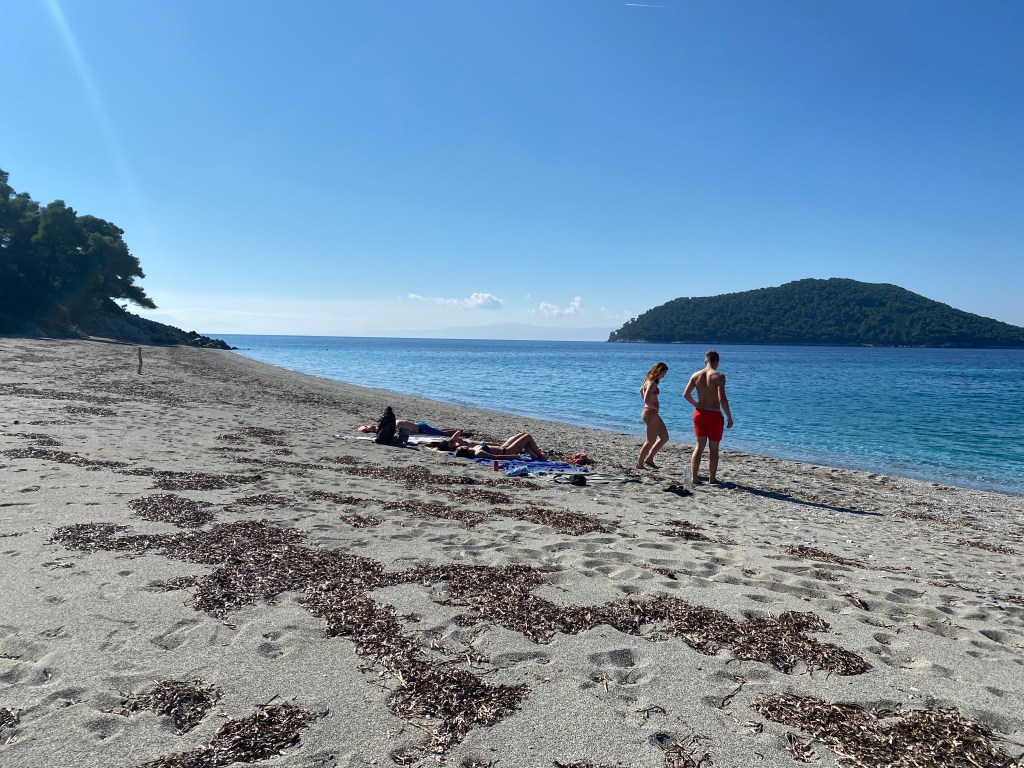 Kort indlæg i dag:-) Morgenstund som vi plejer (Mark fik fat i tandlægen og har nu tid til reparation af knækket tand på mandag) og afgang ca 12 til Kastani Beach, hvor vi var i nogle timer. Vi måtte slås om pladsen med de mange turister…