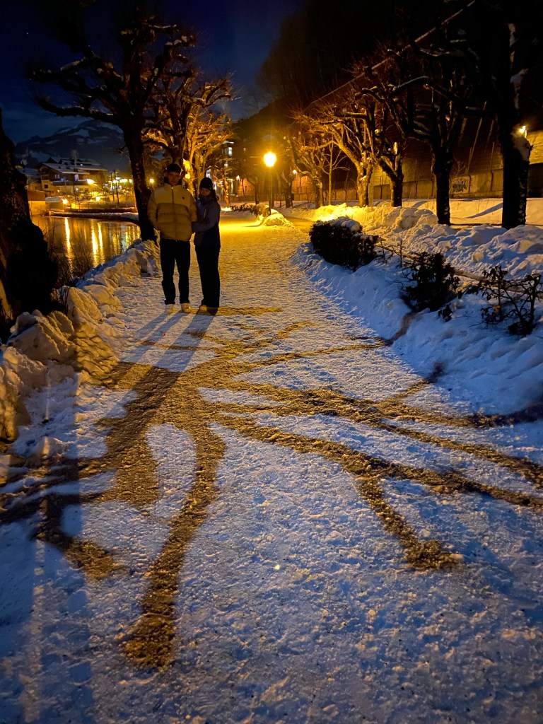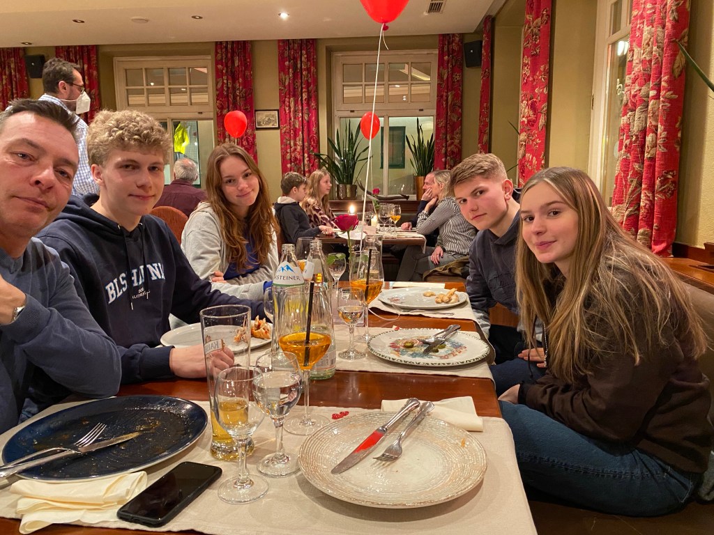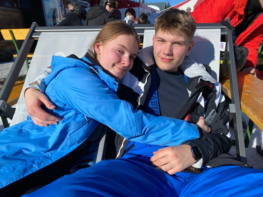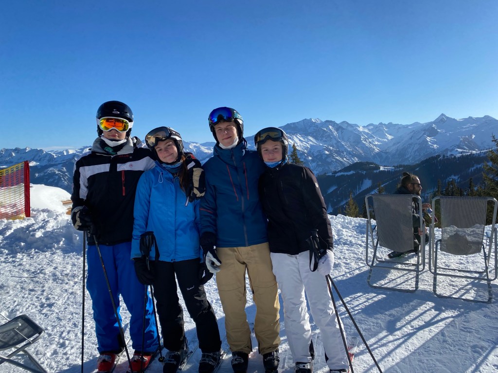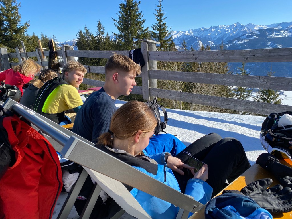 Vi stod på ski ved Schmitten på de røde og sorte ved Sonnenkogel. De var så fede. Vi kørte også den “Hemmelig pist 21” mod Salbach hvor Eik lavede dagens flotteste styrt: på ryggen ned af bjerget på tværs af pisten. Midt på dagen vendte vi snuden mod Areit området hvor vi skulle spise frokost med Valdemars familie på Areit Lounge. Vi blev bremset af en lukket lift på den direkte vej og måtte køre i bund og op på modsatte side og kom lidt for “sent”, men sådan er det på ski og det var skønt at sidde der i solen i en stor flok.