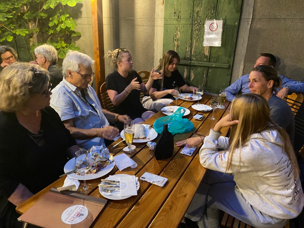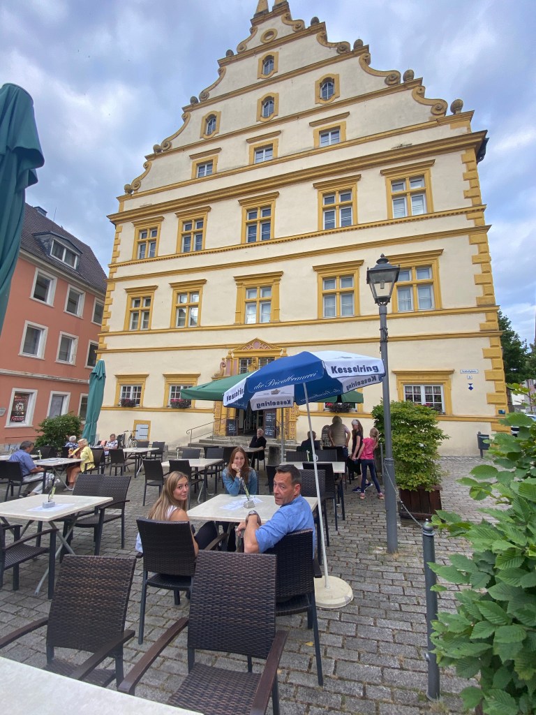 Vi 4 spiste ved slottet på torvet og bestilte lidt mad til bagtroppen som Take Away eftersom de ikke kunne nå frem før restauranterne lukkede. Og en stor øl!