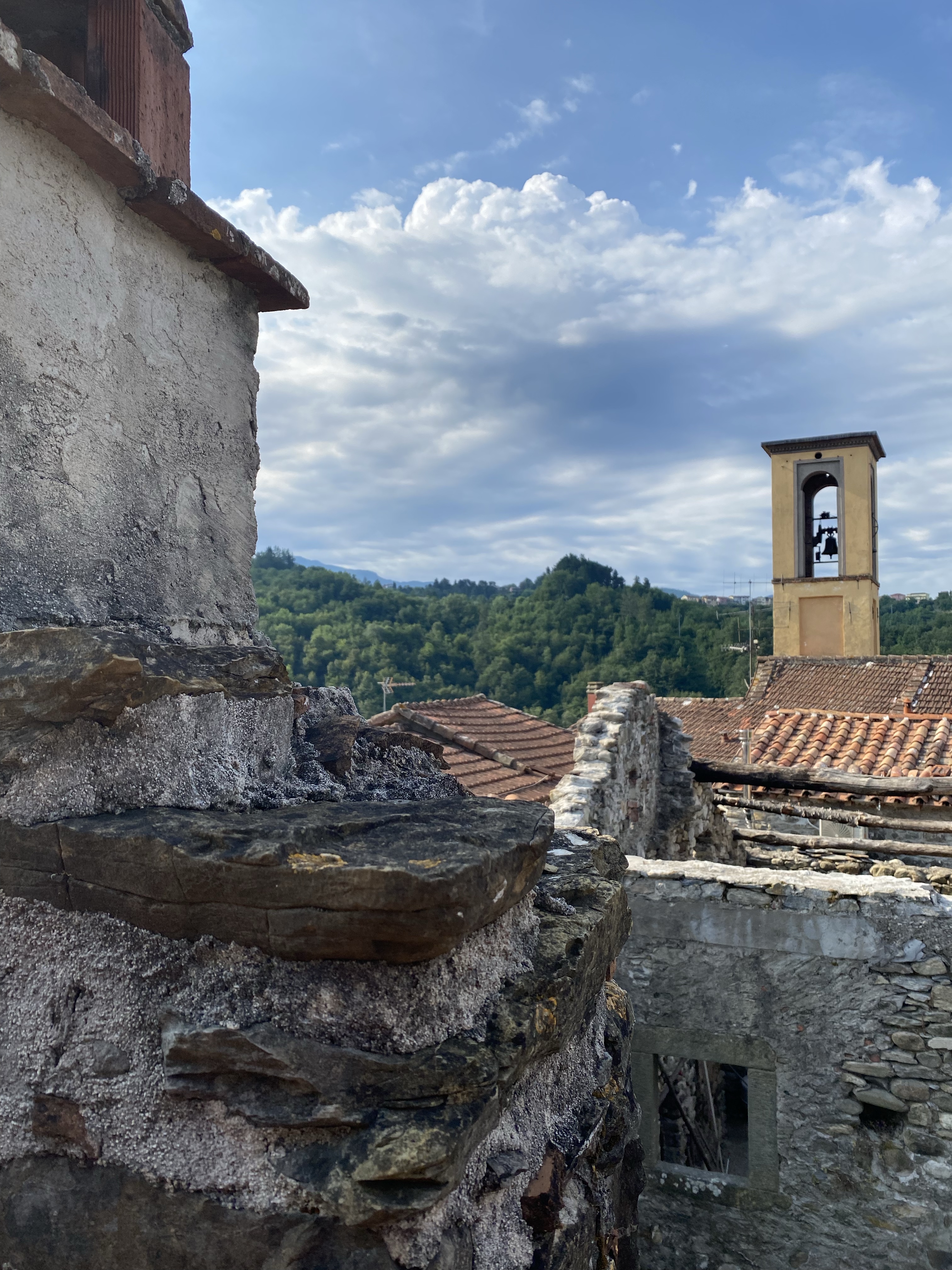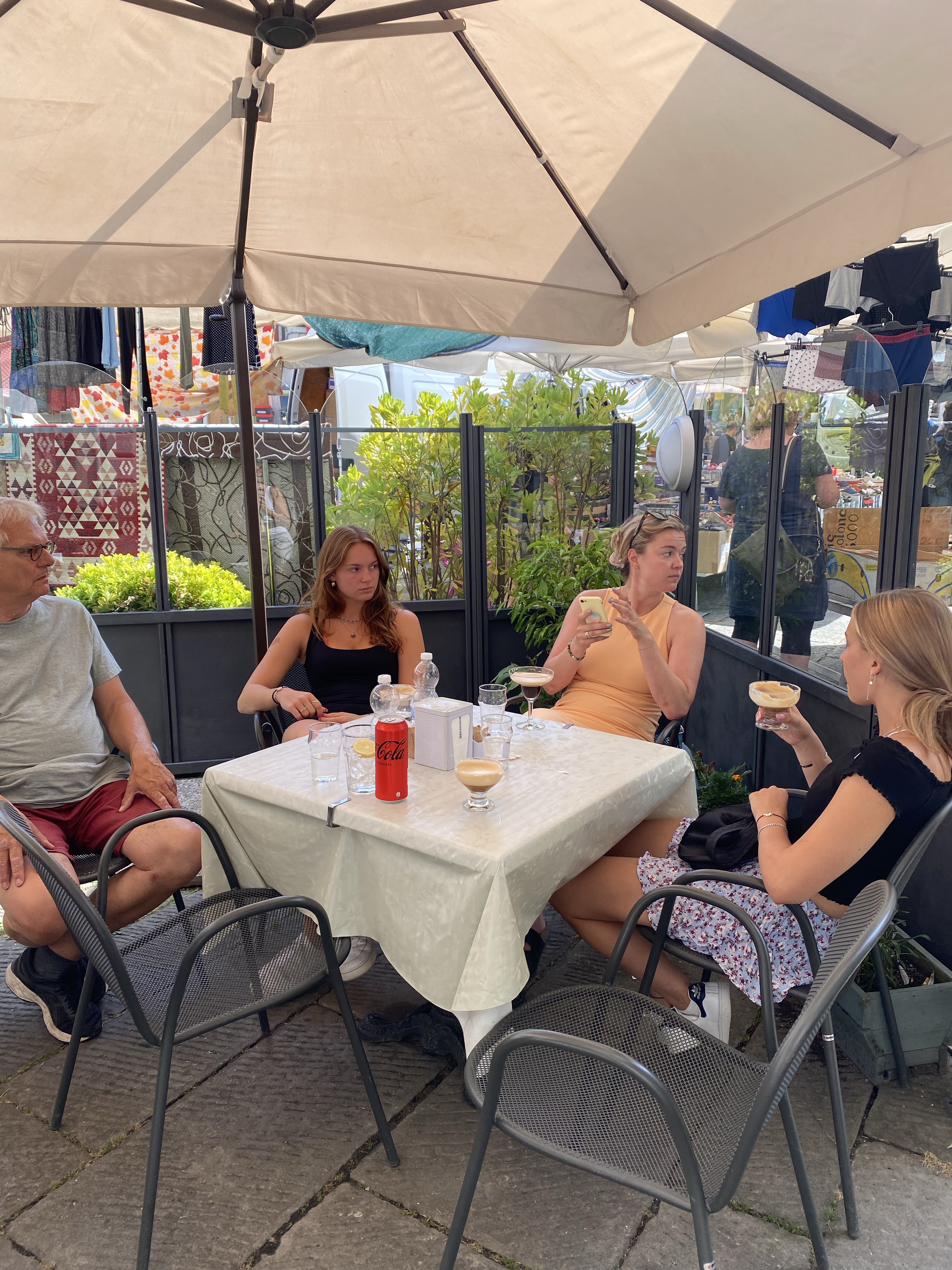 Morgenen startede med skyer og morgenkaffe på terrassen. Ca 9.30 kørte 7 ud af 9 til Fivizzano til marked. Vi drak en vidunderlige is kaffe shaket med mælk og osede lidt rundt.
