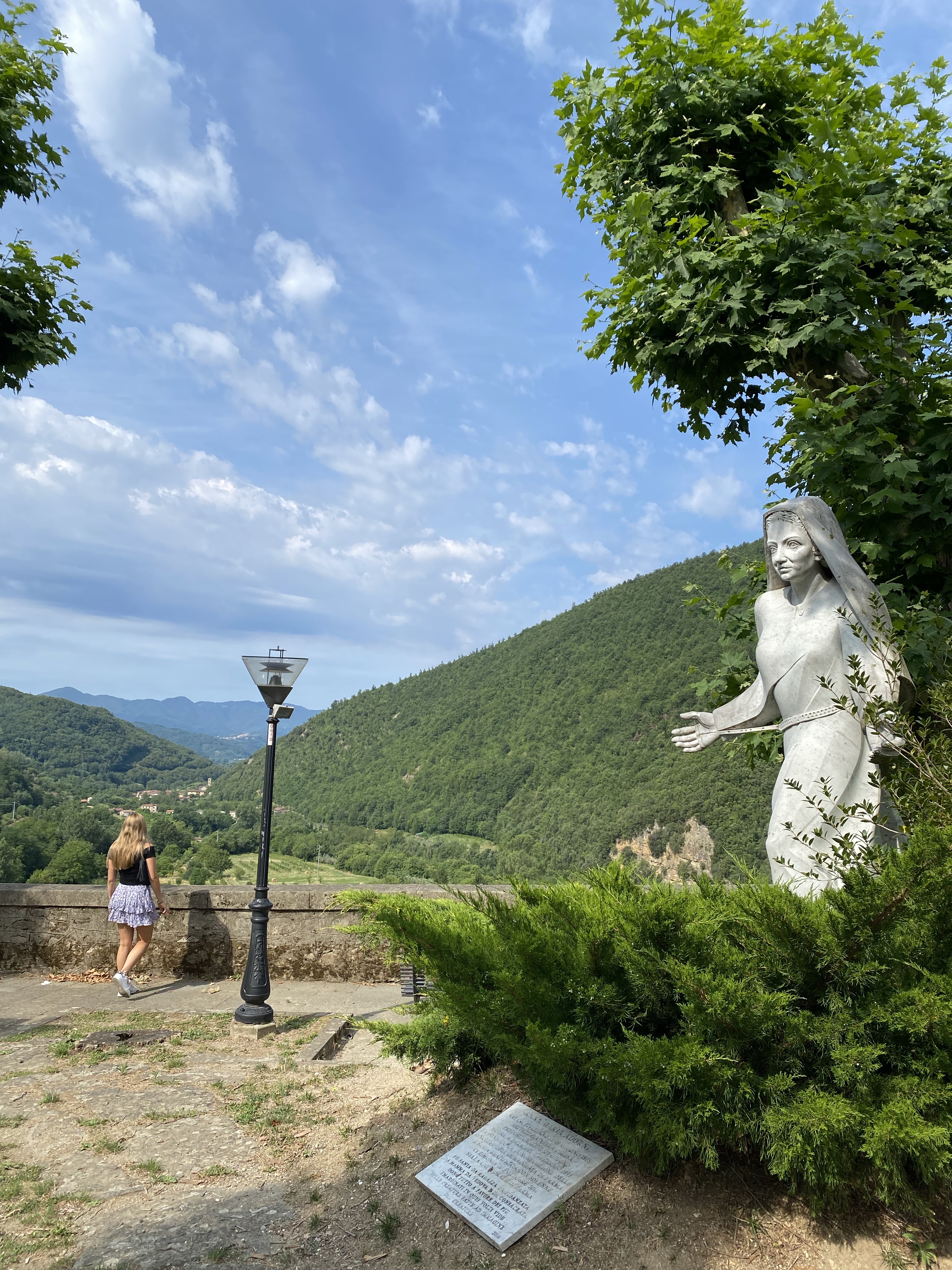 Kl 17.45 køb jeg op til min vandpost på bjerget og ned igen. Kl 19 kørte vi mod restaurant i Monzone med mig bag rettet.
