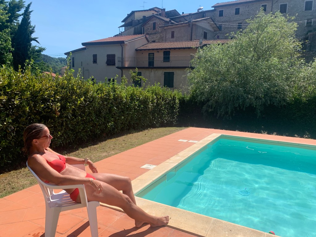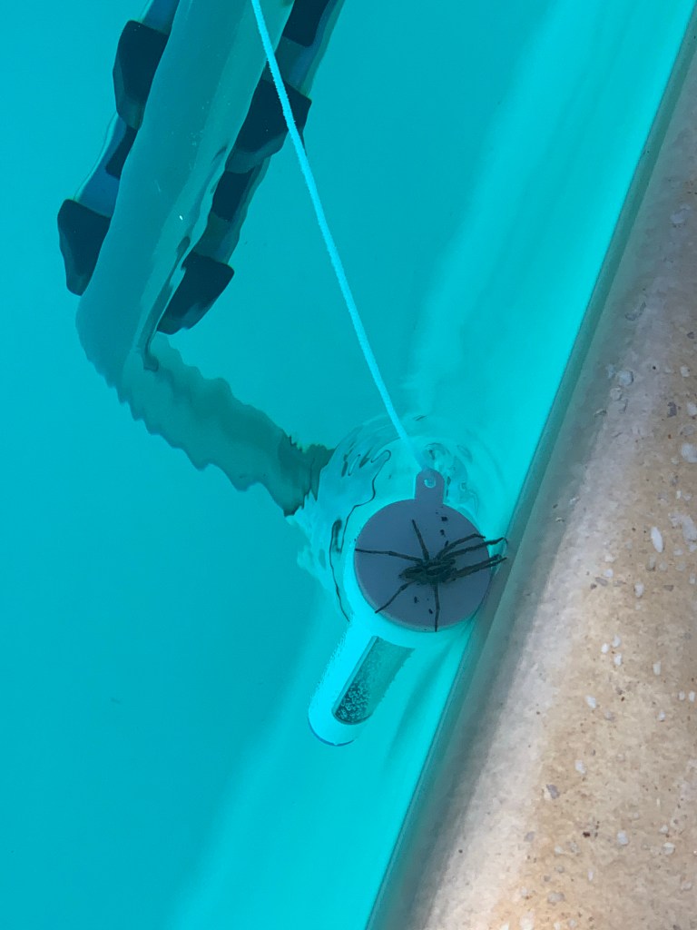 Efter den gode morgenkaffe på terrassen nulrede vi i poolen. Fjernede verdens største edderkop fra termometeret.