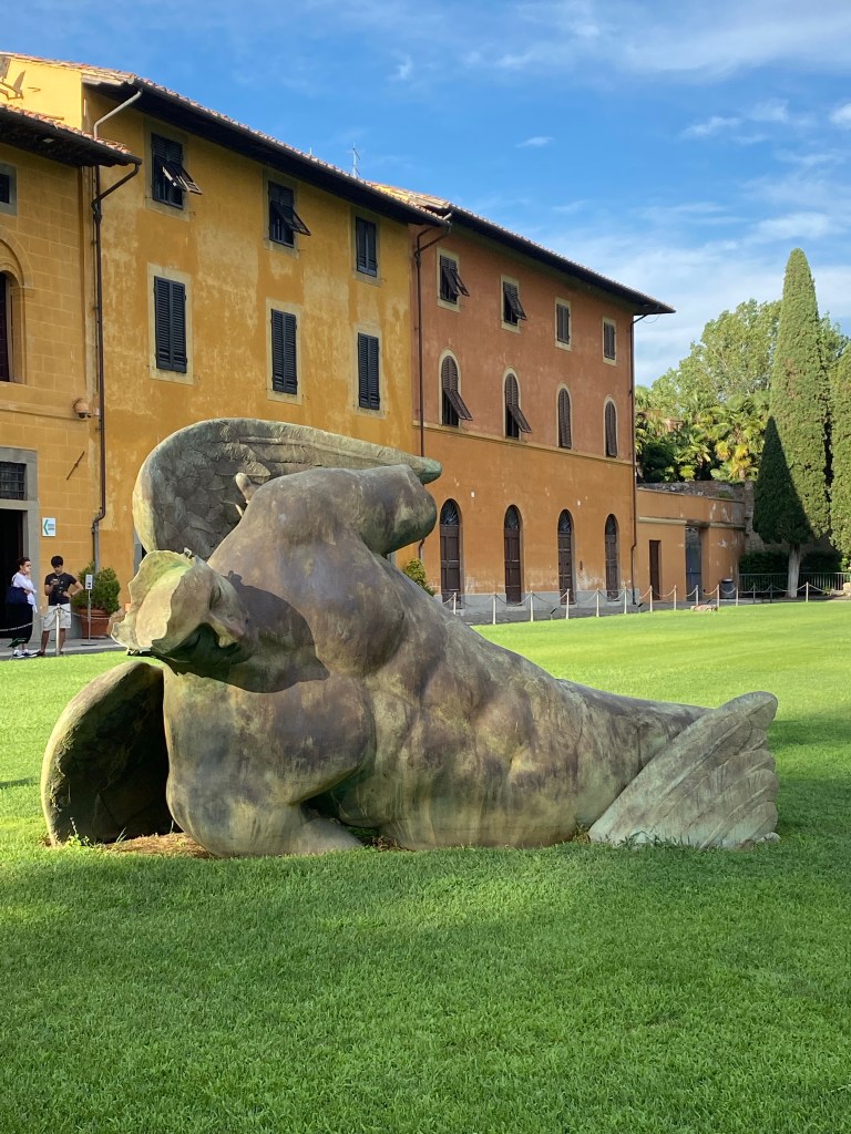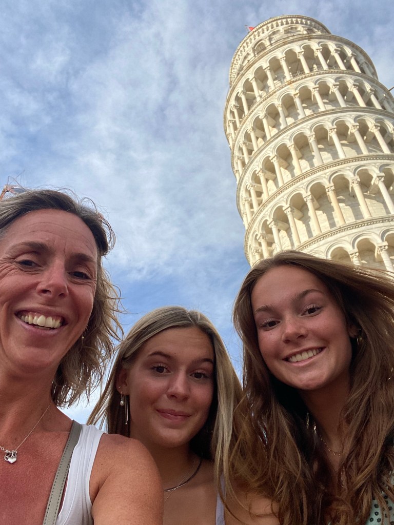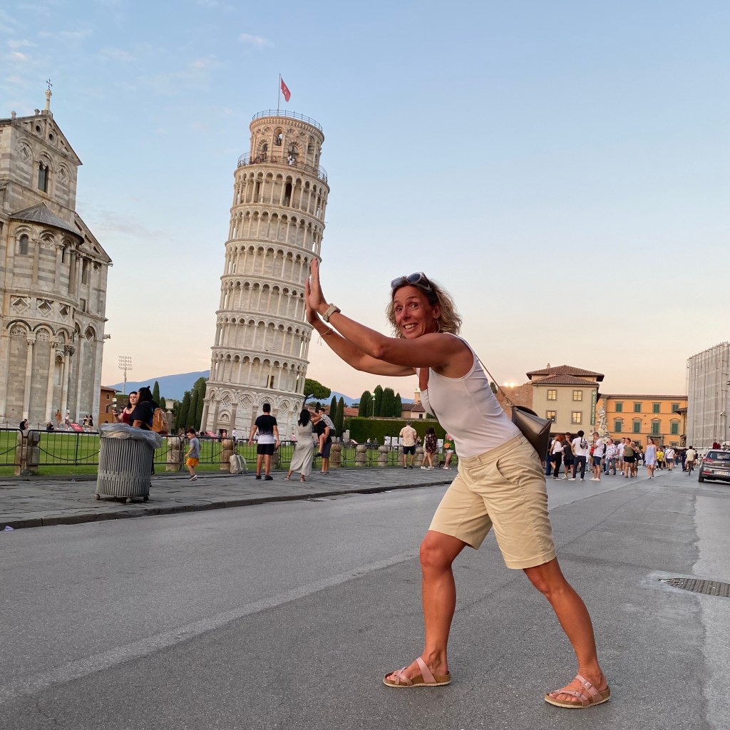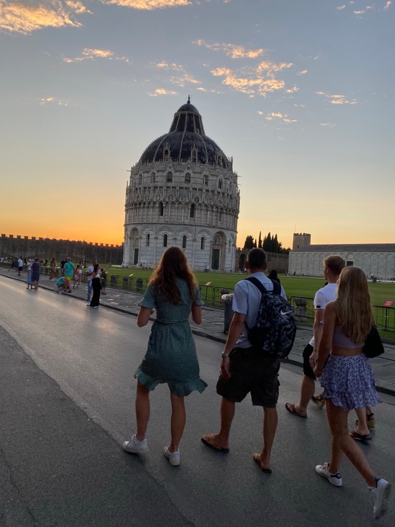 Ved fire-tiden nulrede vi op og badede. Kl 17 var der afgang mod Pisa. Dan og Anne blev hjemme. Vi har hentet Victoria, Emilys veninde og de skal videre på 14 dages ferie efterfølgende flere steder i Spanien.