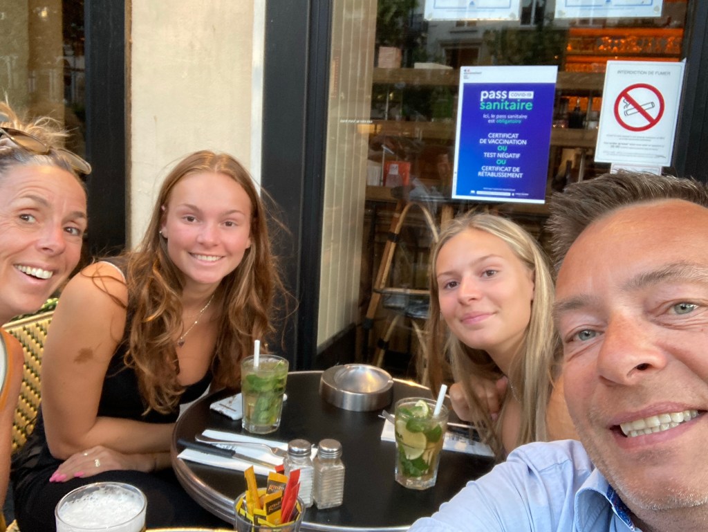 Vi spiste en lokal burger og skrev med Esben og joke som også er i Paris om at drikke en morgenkaffe i morgen inden de tager til Sydfrankrig.