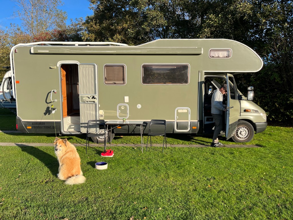 Carla og Valdemar rykkede på alkoven og Mark og jeg i køjerne bagi i bilen. Balder vogter pladsen:-)