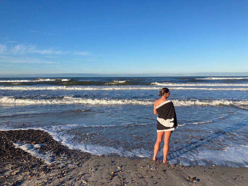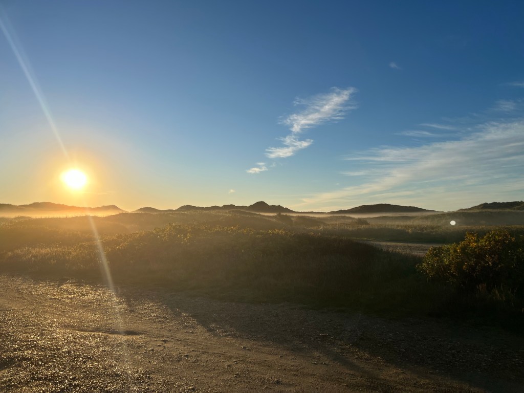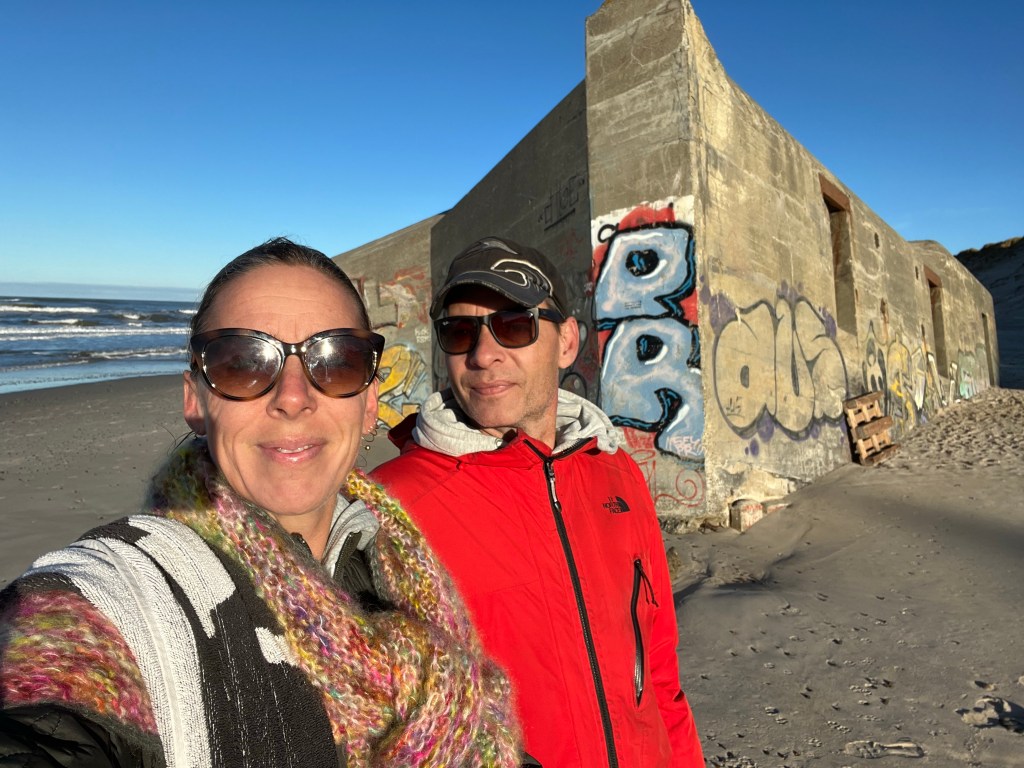 Vi gik laaaang morgentur før morgenmaden, jeg badede i Vesterhavet – vidunderligt!- og så drak vi kaffen udendørs foran camperen – det er genialt. Hus på ryggen, altid mad, bad og “banjo” on the go!