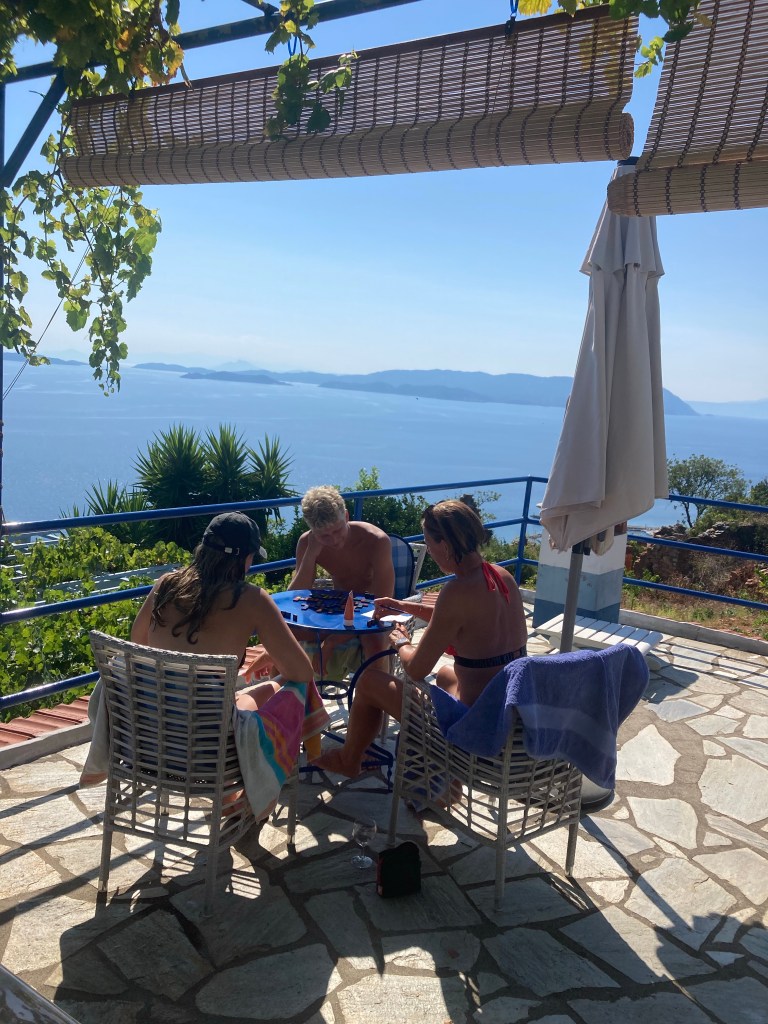 Vi hoppede direkte i poolen. Mens vi havde været væk havde de unge spillet backgammon og hørt musik.
