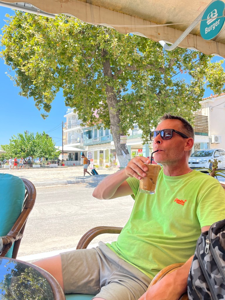 Vi drak en cafe Frappe og hentede færgebilletterne til i morgen.