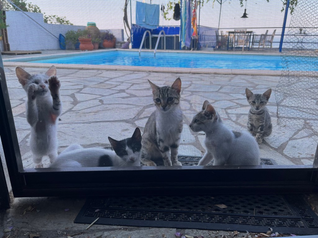 Trogdor går sine egne veje og holder sig mest for sig selv, Ghost der gerne vil lege med de små og ellers er blid, og så de tre små; Olaf, der er den første på skødet når muligheden byder sig, Simba en lille spirevip som altid vil lege og Cookie der helst laver rav i den hver gang de andre leger eller sover.