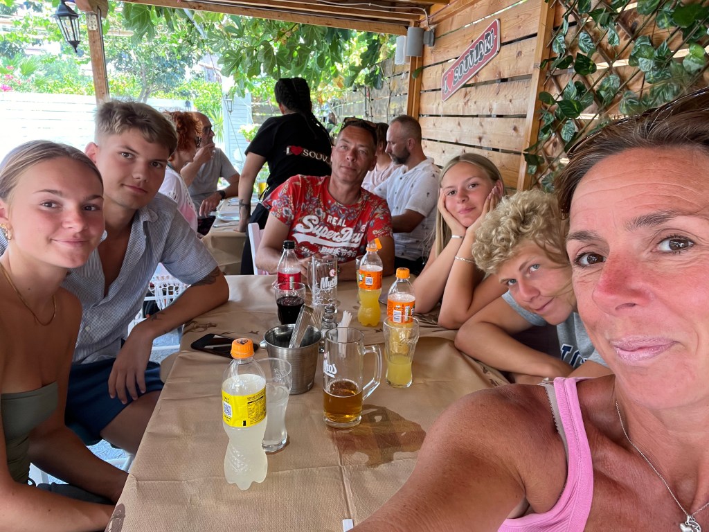 Pizza til alle mand til aften og selvom de unge havde mulighed for at gå i byen stod den på lidt mere spil på terrassen inden jeg faldt i søvn på en liggestol. Jeg havde kun sovet meget lidt den forrige nat.