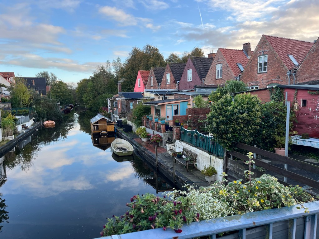 Så gik vi på torvet og købte morgenbrød med hjem og så kanalerne og ud over Trenen – den ca 94 km lange biflod sol mødes med Ejderen i Friedrichstadt.